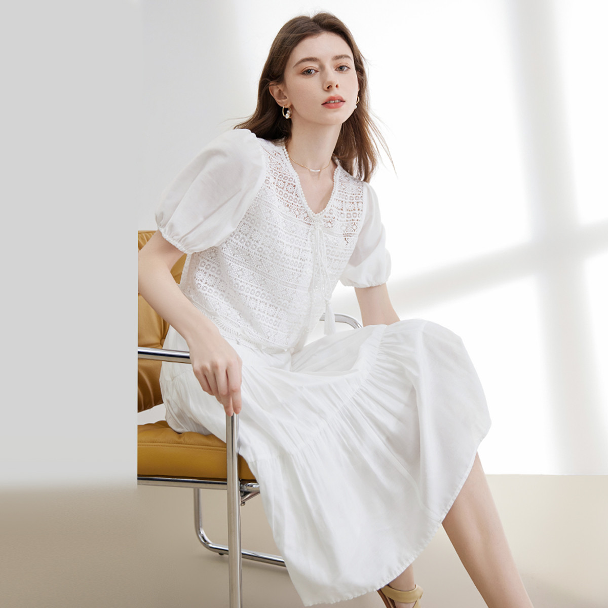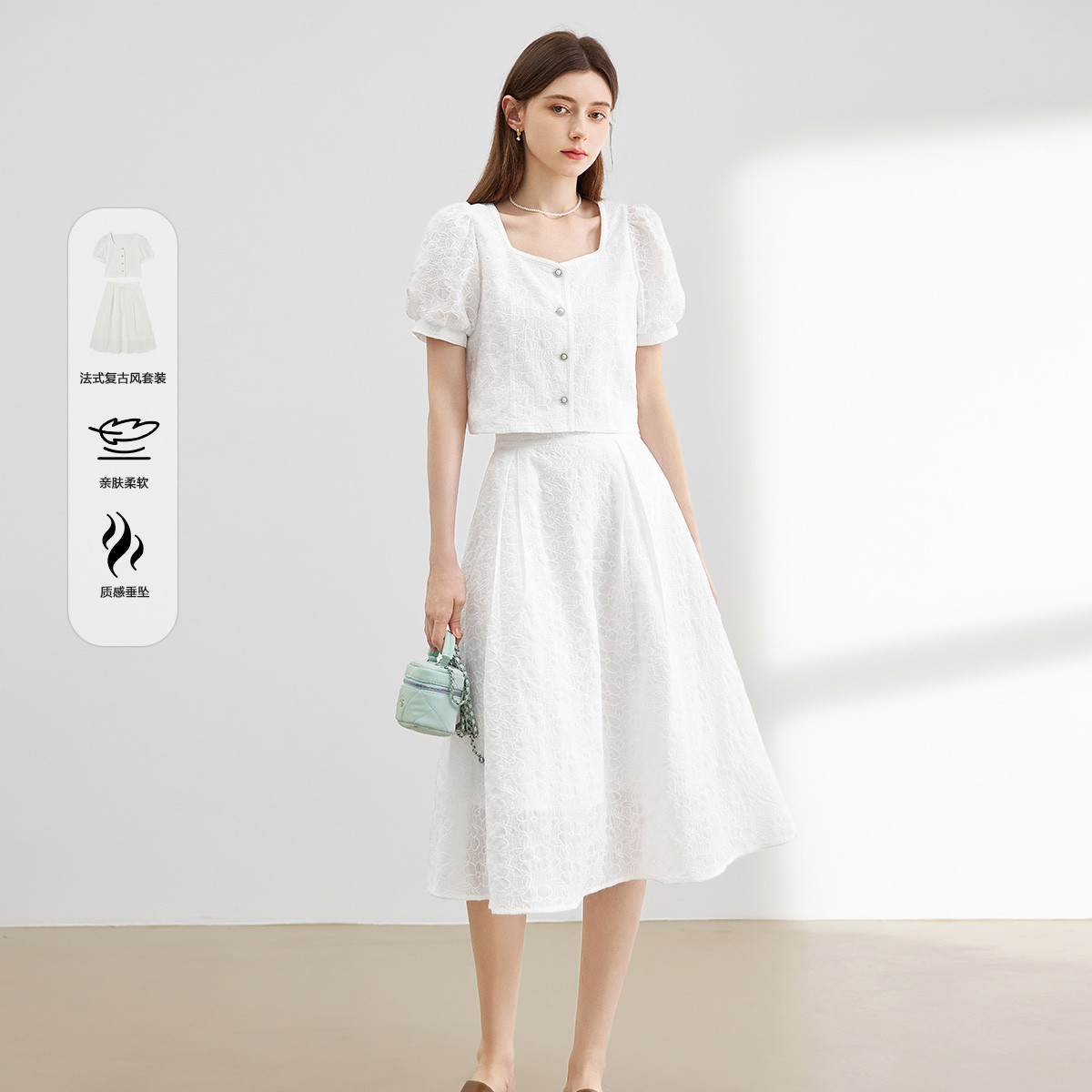 【2024夏季】蕾丝小白裙套装裙女短袖蕾丝衫半身裙两件套女 134740