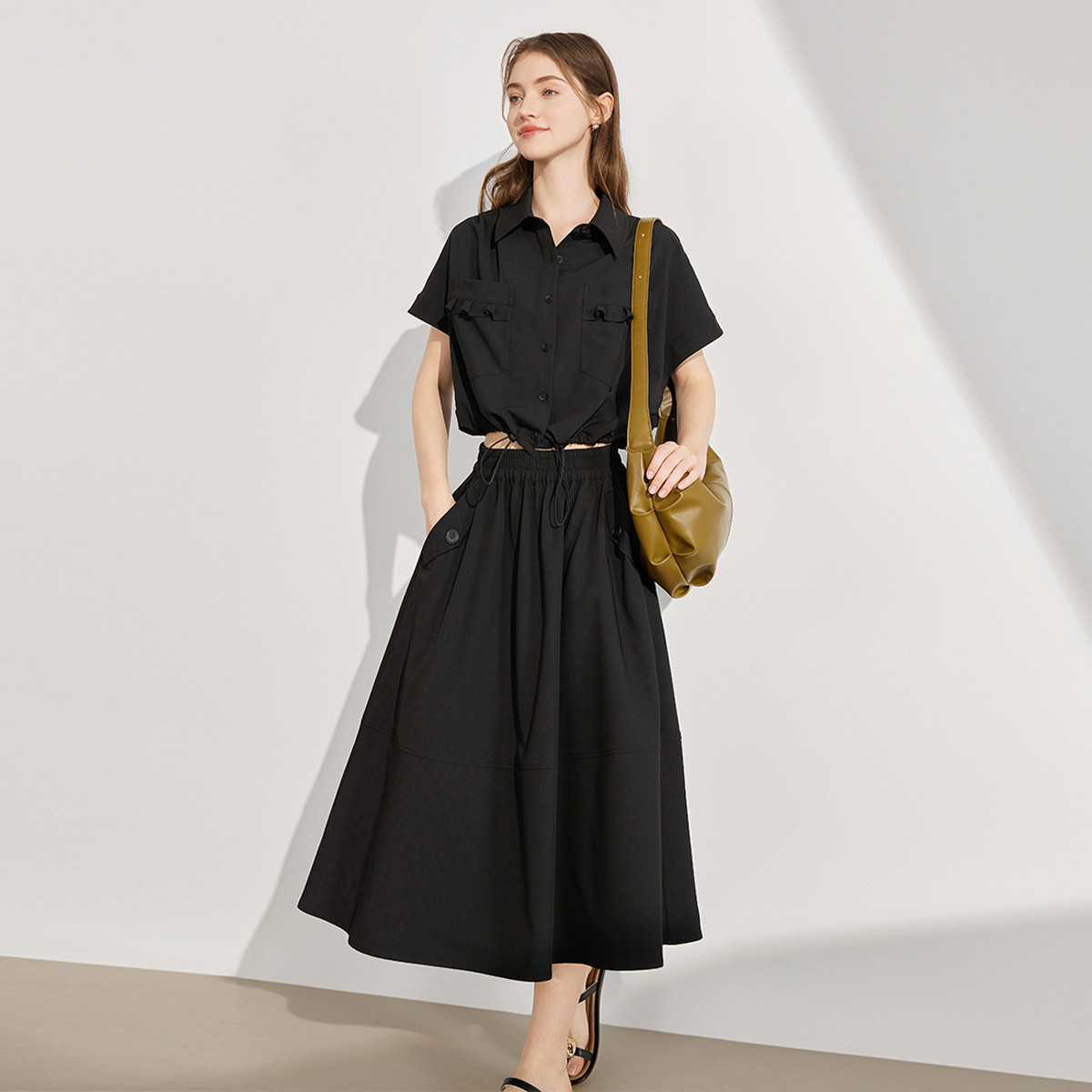 【2024夏季】简约工装风衬衫套装裙女上衣高腰口袋半裙两件套 956756