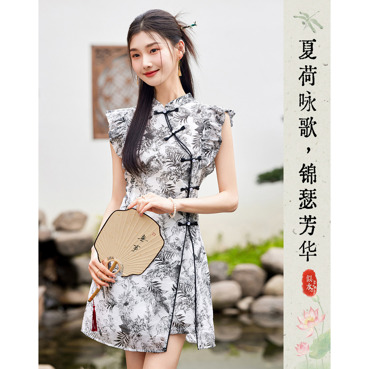 【新中式古风套装】夏季水墨印花优雅气质时尚国风女士套装 045185