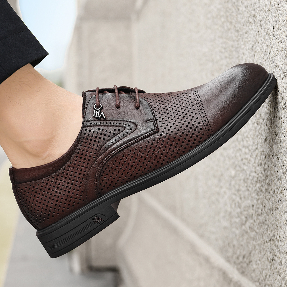 男士商务休闲鞋镂空透气冲孔鞋男商务通勤皮鞋子男 776975