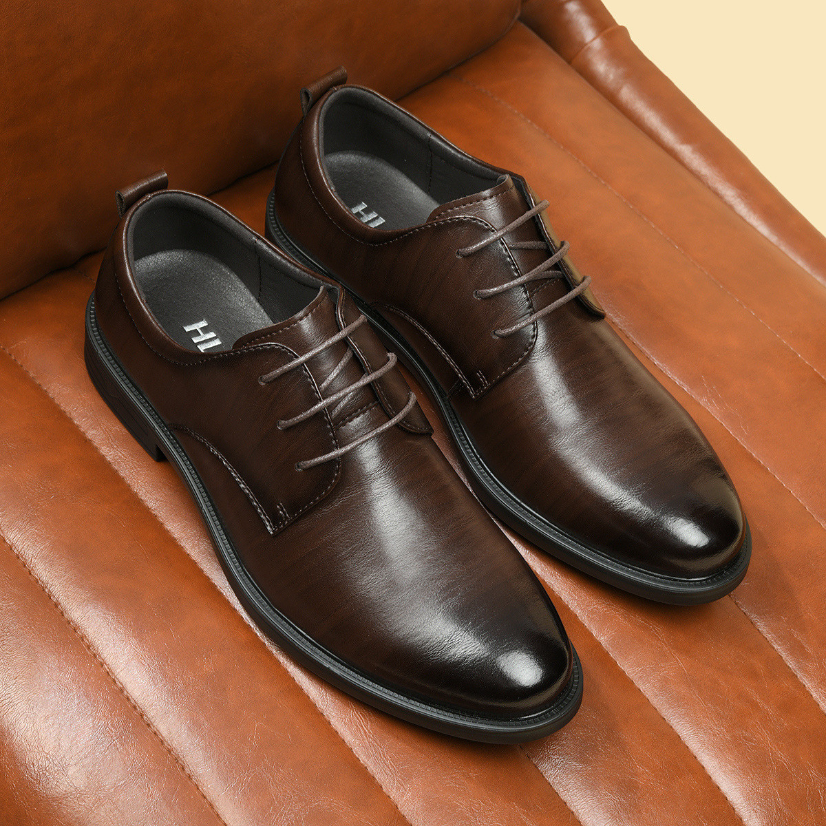 【头层牛革】男鞋复古英伦风真皮德比鞋男商务透气正装皮鞋增高 048975