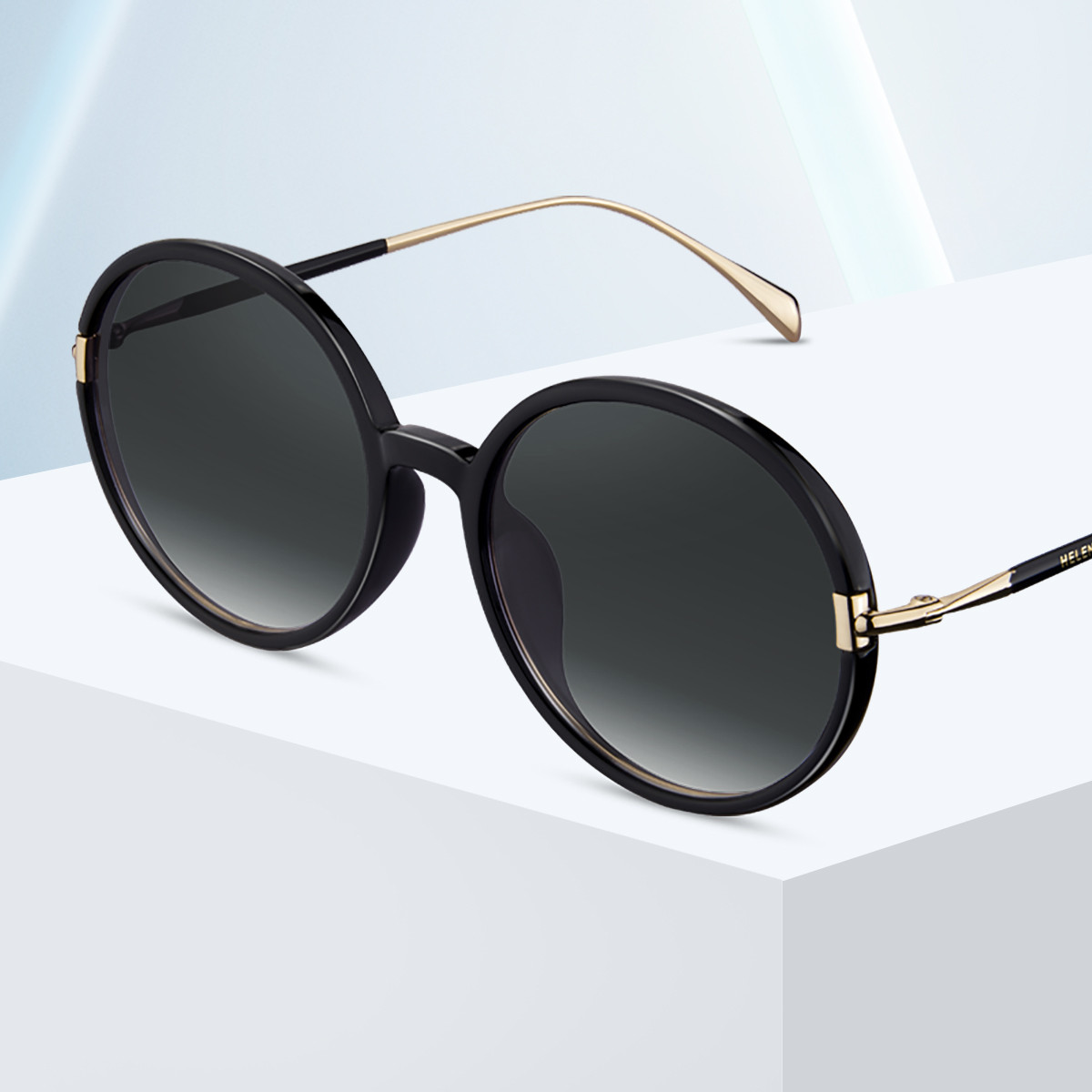海伦凯勒太阳眼镜女复古圆框优雅灵动时尚墨镜防紫外线 704411