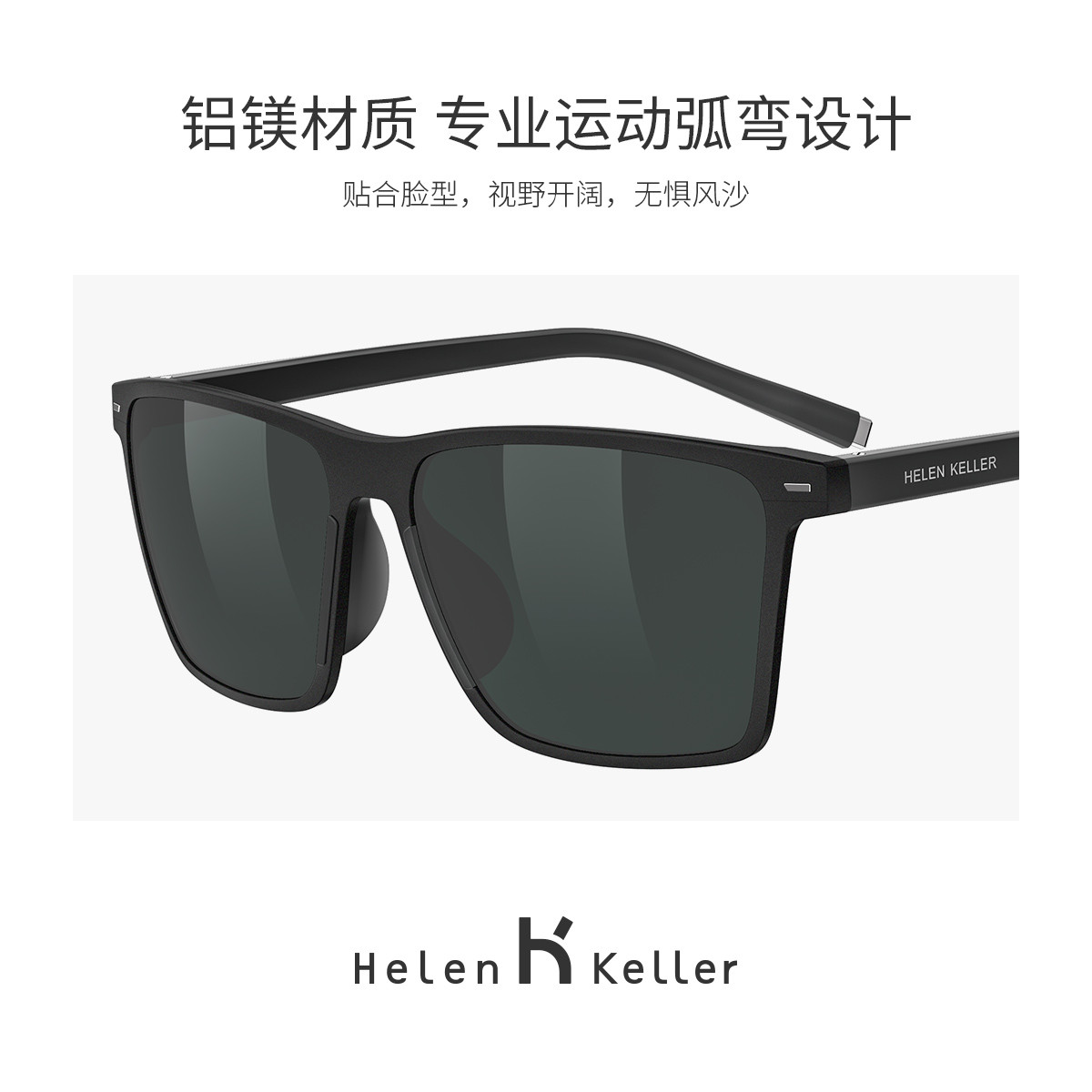 海伦凯勒太阳眼镜经典方框运动驾驶镜防紫外线开车墨镜男 319259