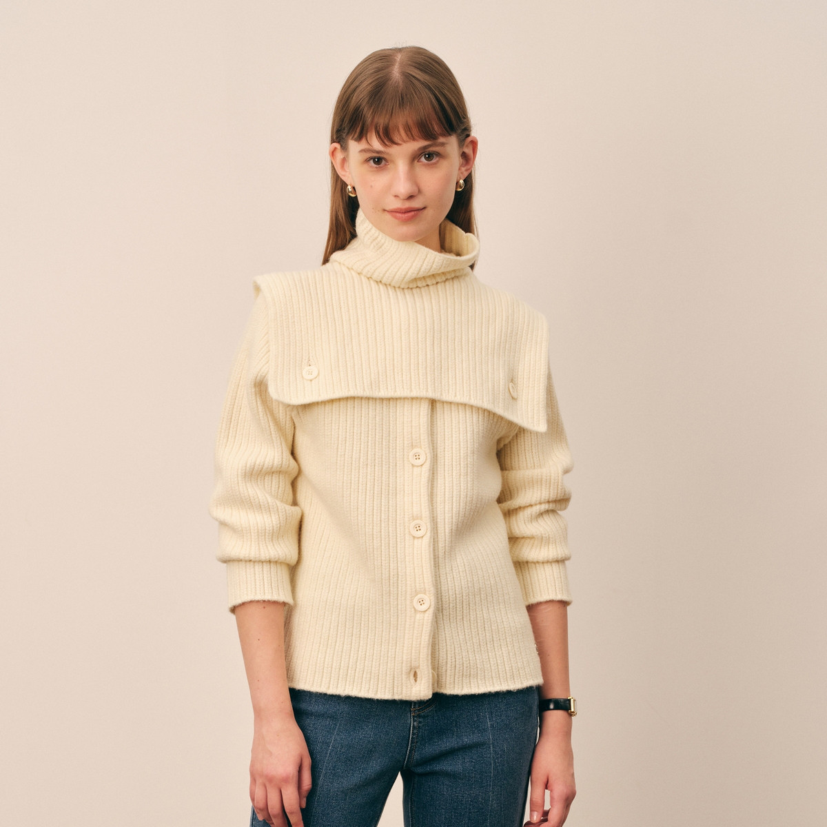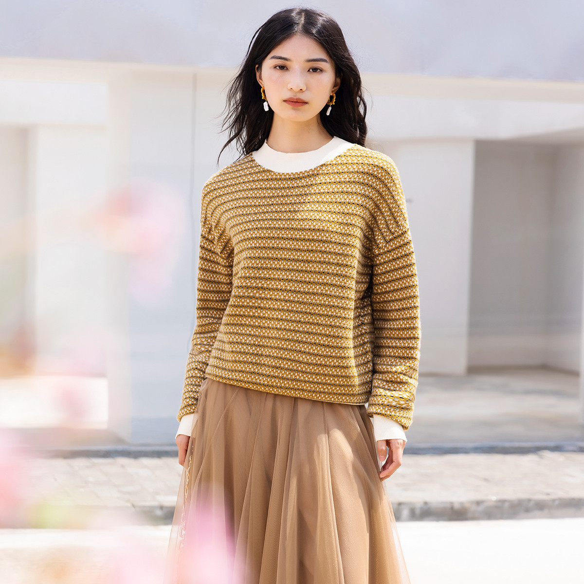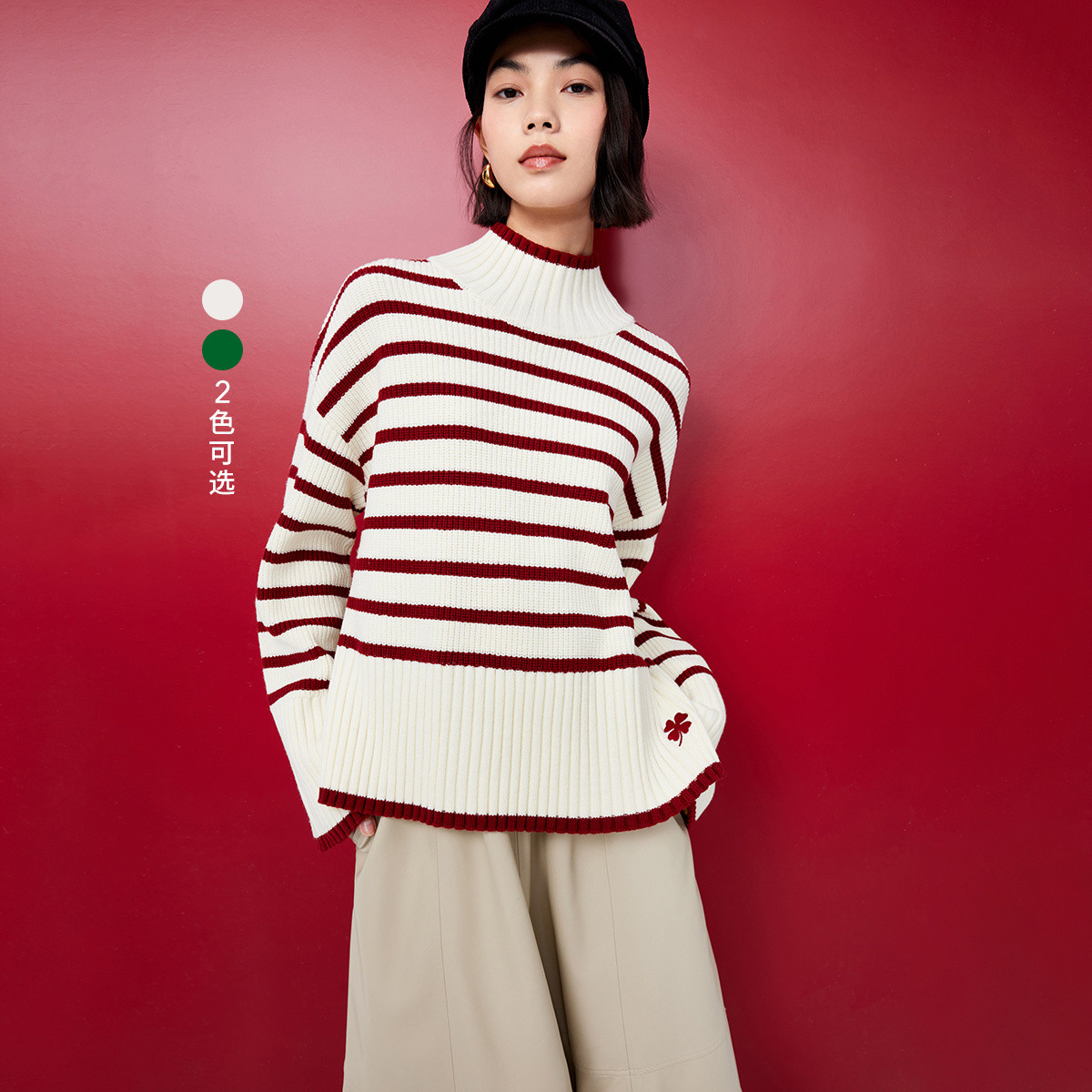 春季含绵羊毛复古条纹保暖高领都市通勤款毛衣上衣 776219