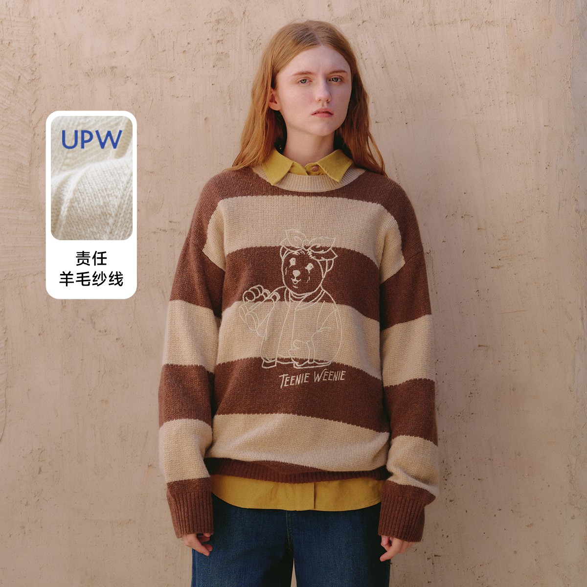 小熊春秋款宽松宽条纹圆领毛衣羊毛针织衫美拉德穿搭 527233