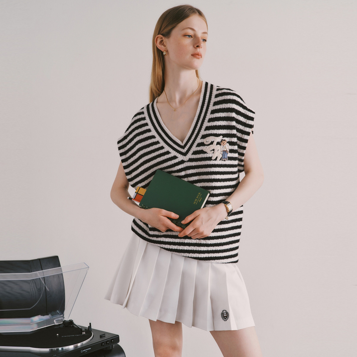 小熊春秋款设计感针织衫条纹撞色背心马甲学院风女装 270337