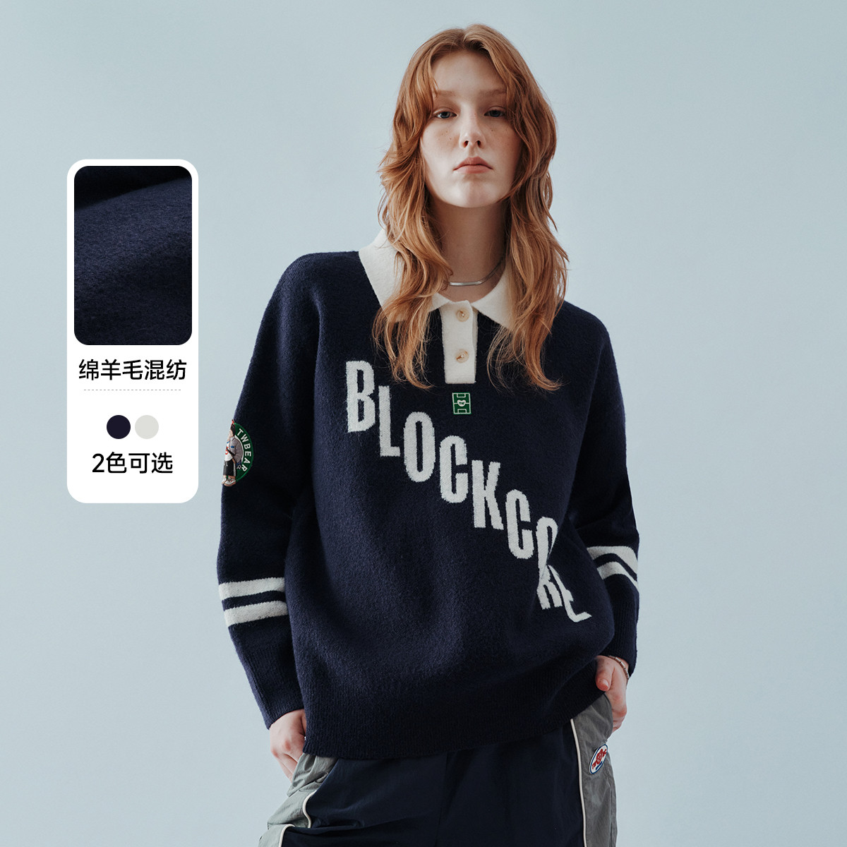 小熊春秋款宽松POLO领套头毛衣软糯针织衫女士 809025