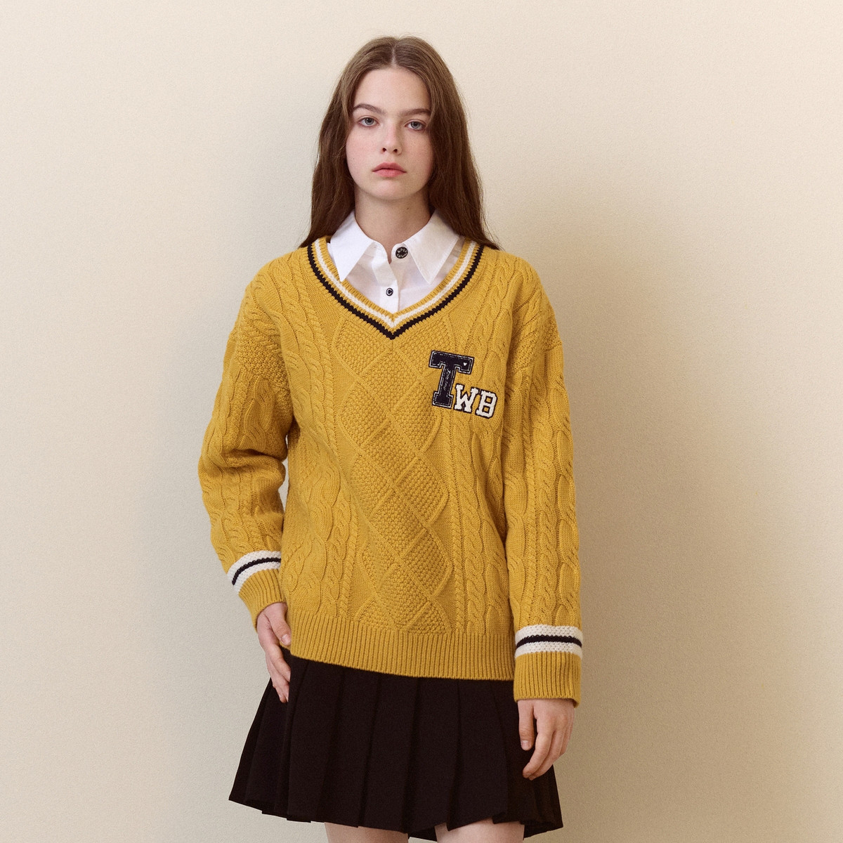 小熊春秋款宽松V领套头毛衣针织衫内搭外穿 734657