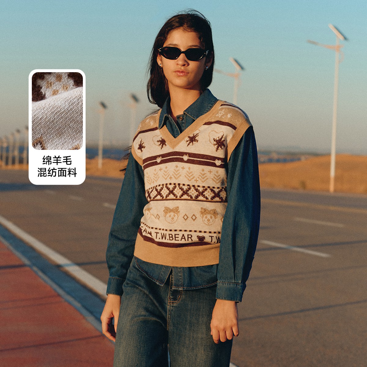 小熊春秋款可爱提花毛衣背心针织衫外穿女装 338497