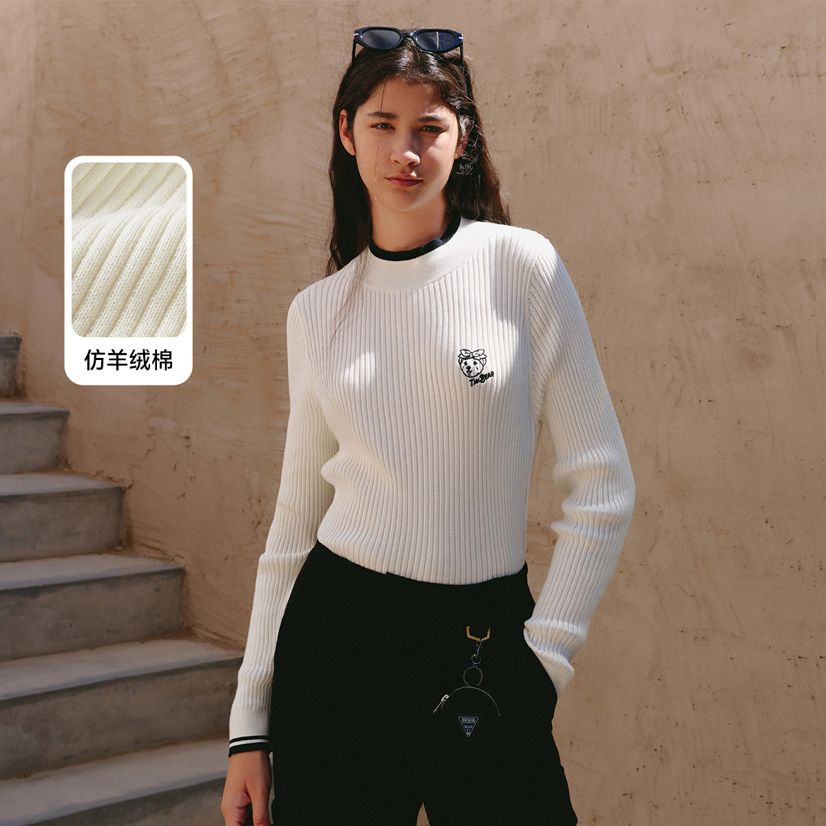 小熊春秋款打底衫弹力贴身套头毛衣棉舒适女装 677505