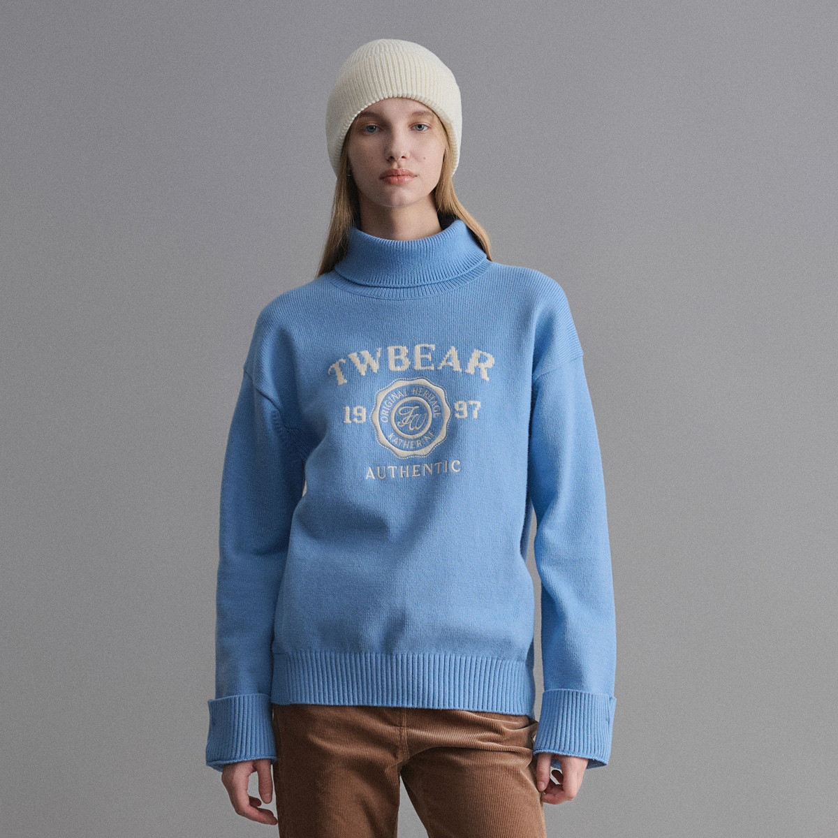 小熊春秋款高领套头毛衣针织衫女装软糯慵懒风宽松上衣女装 979457