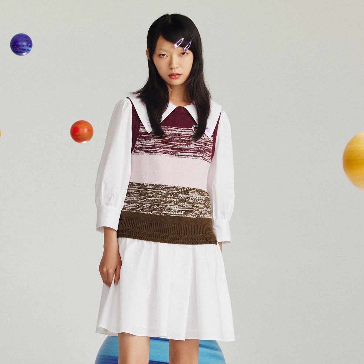 小熊圆领套头条纹针织背心马甲毛衣外搭内穿女秋冬款 541057