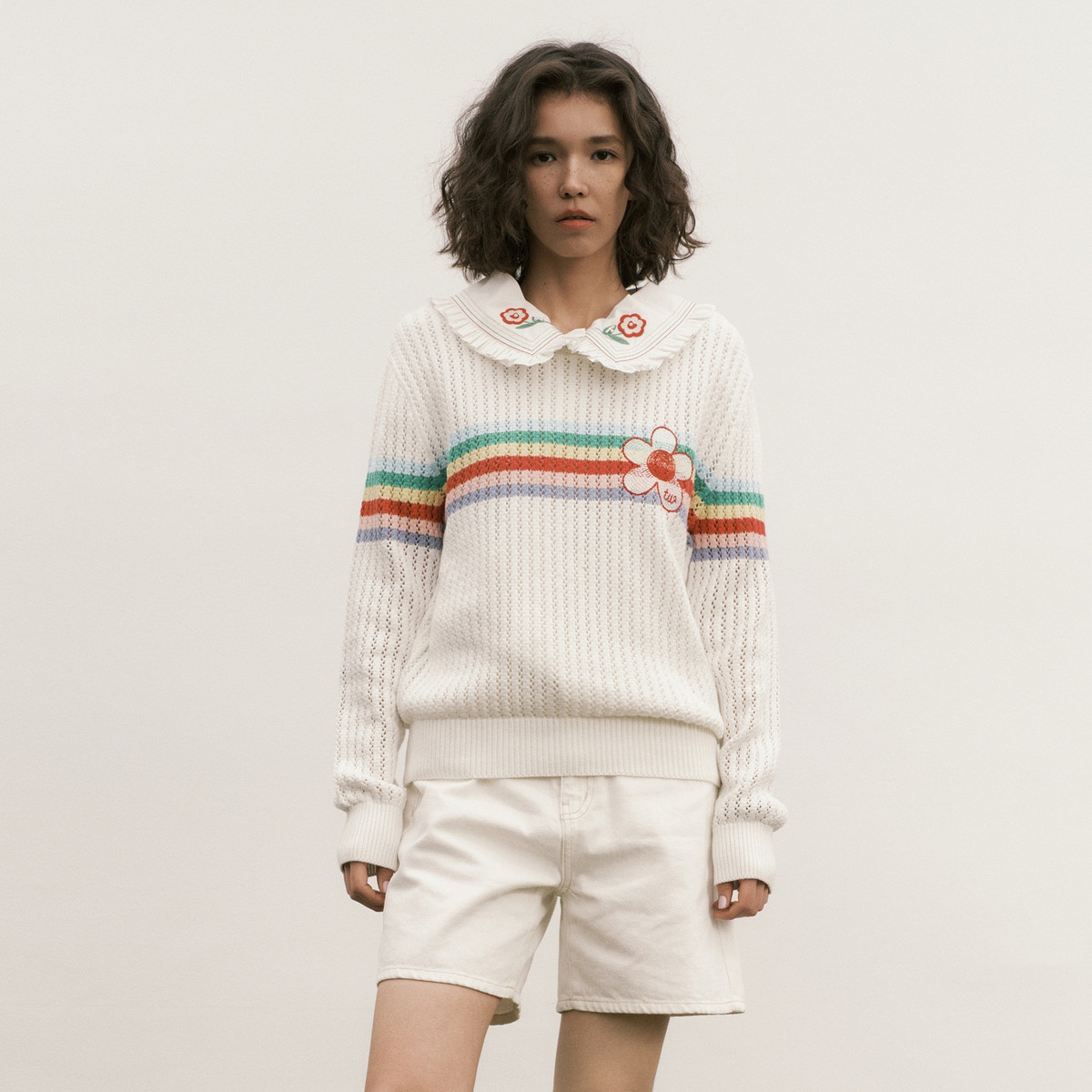 小熊春装学院风甜美少女荷叶边毛衣针织衫女装 025025