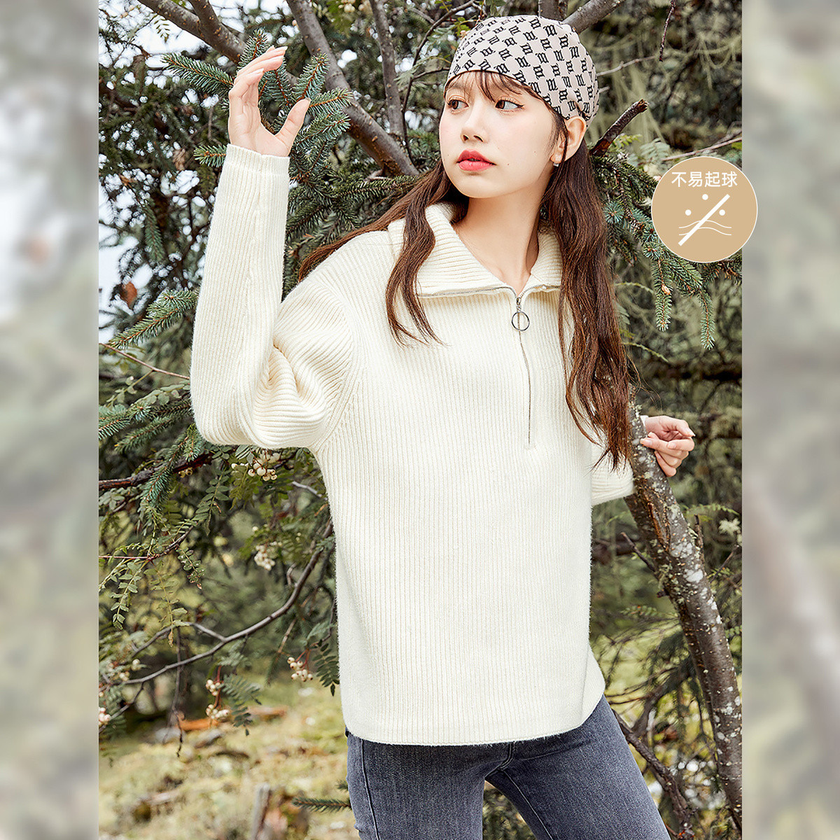 春秋高领毛衣女慵懒风通勤拉链落肩袖保暖套头上衣 101460