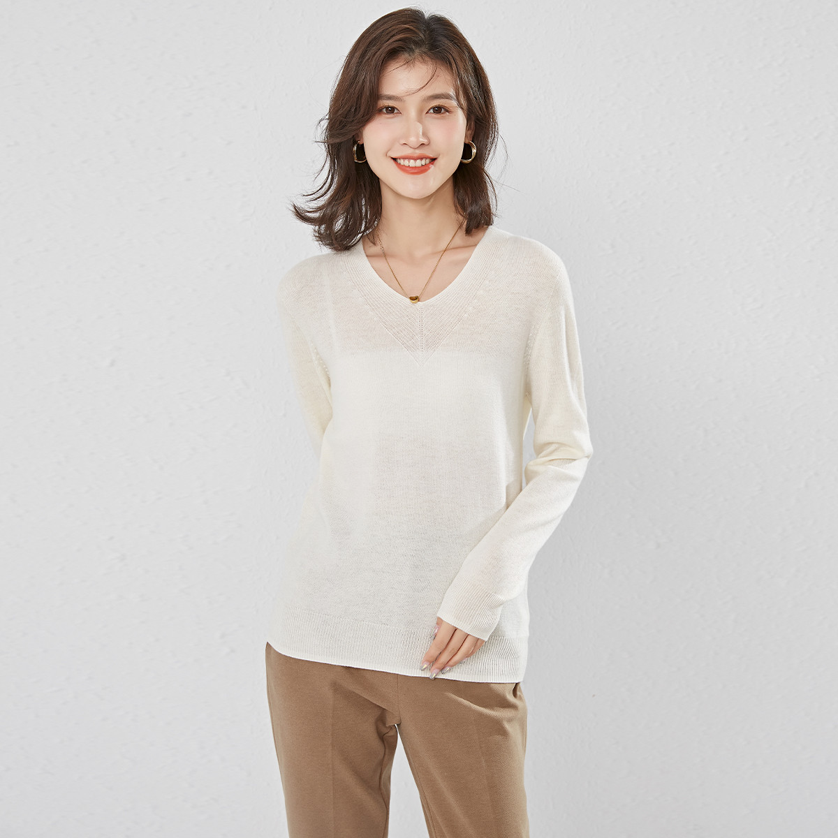 【100%绵羊毛】春秋v领针织衫简约羊毛衫女打底衫毛衣上衣 188063