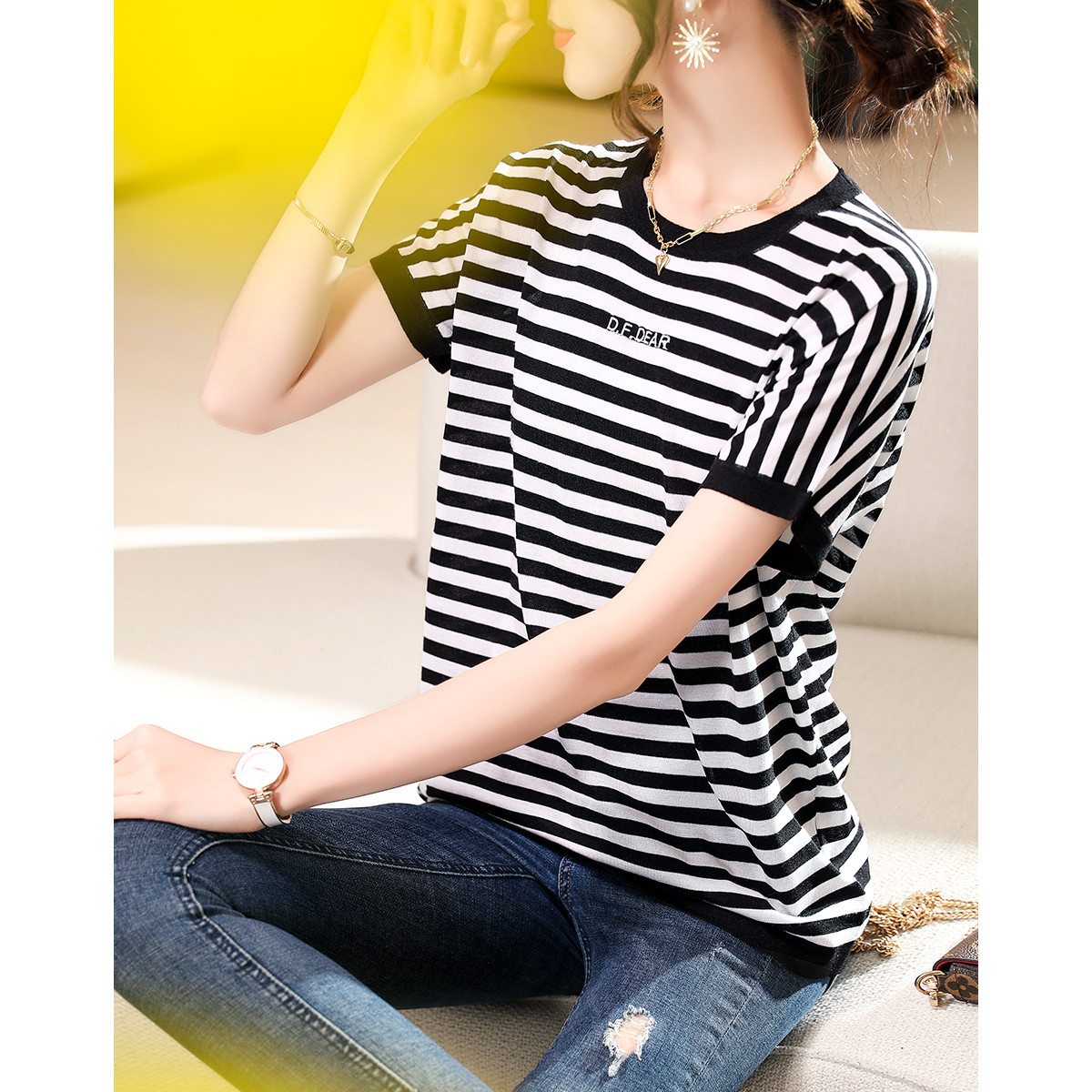 【断码捡漏】冰丝T恤高级感经典百搭黑白条纹印字母短袖夏季新款 635529