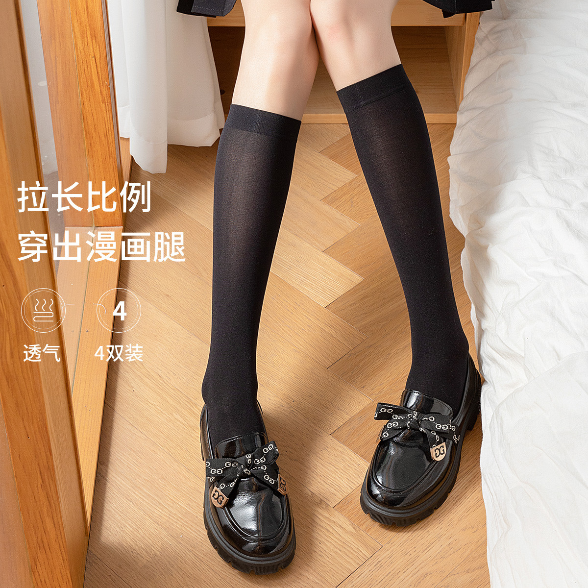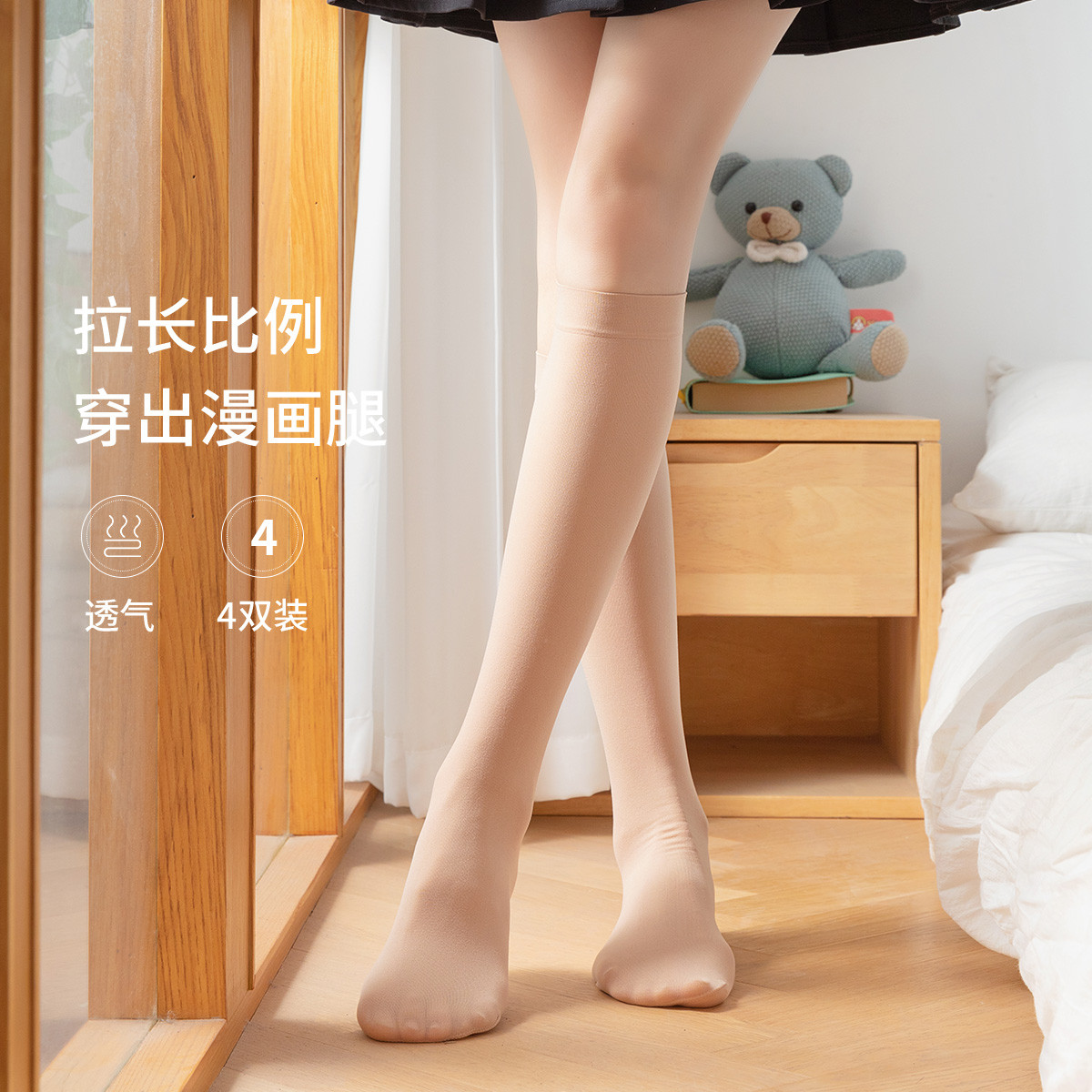 【4双装】纯色丝袜女士春夏款舒适透气长筒袜薄款小腿丝袜 705483