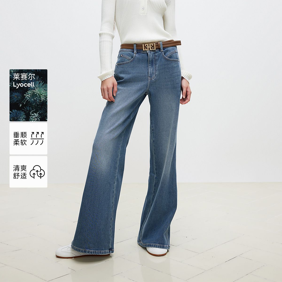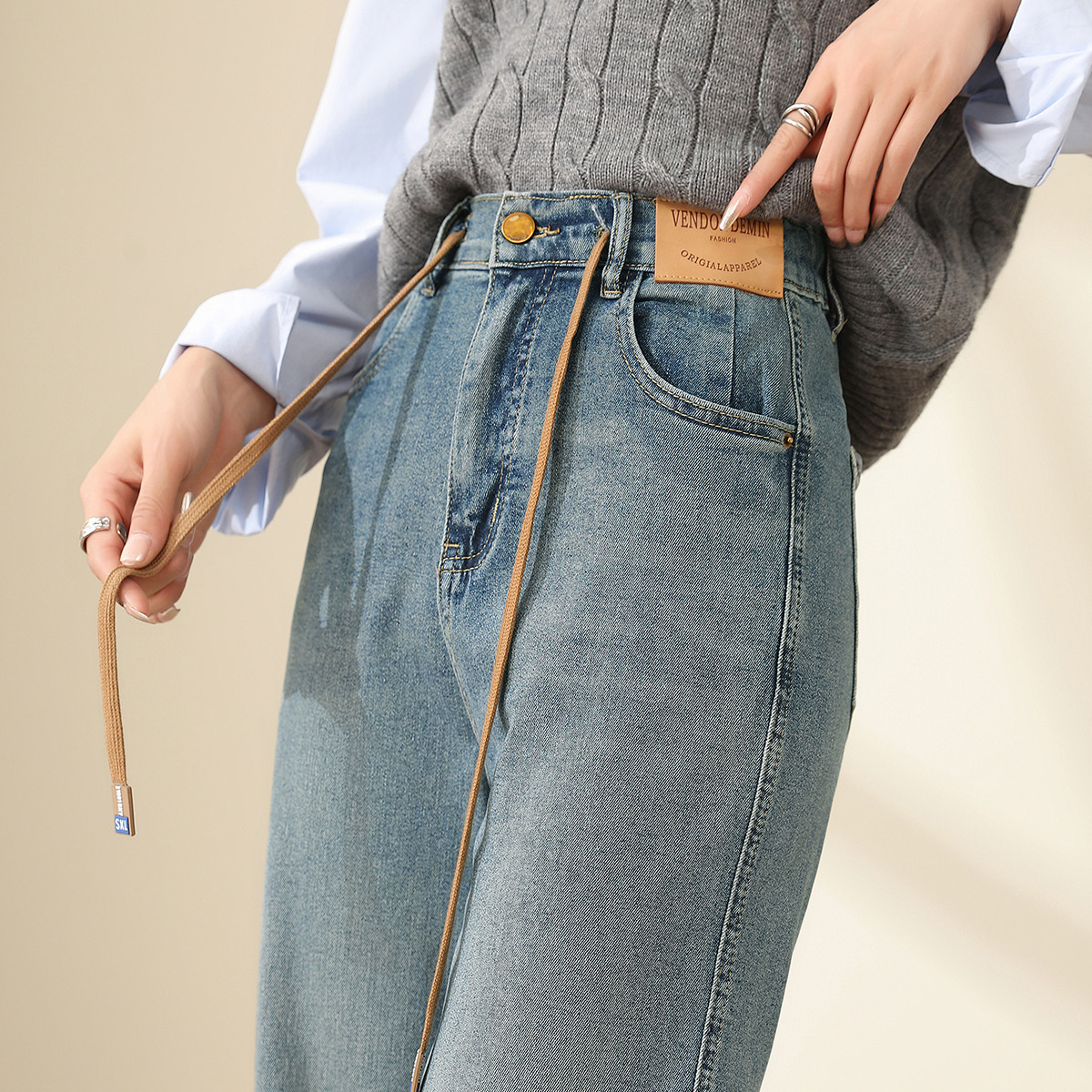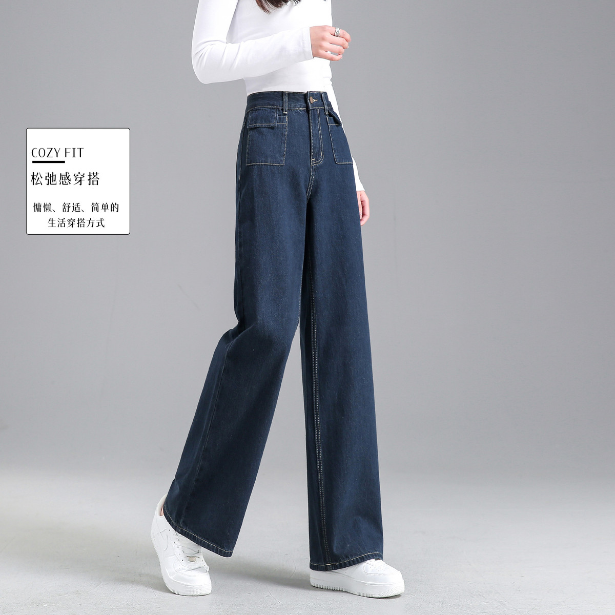【含绵羊毛】夏季简约百搭高腰九分阔腿牛仔裤女 561562