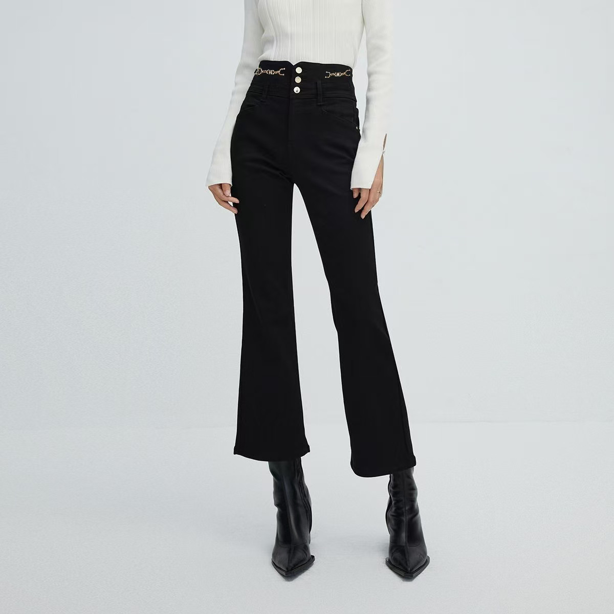 【加绒】春季复古百搭高腰喇叭裤牛仔裤女 316058