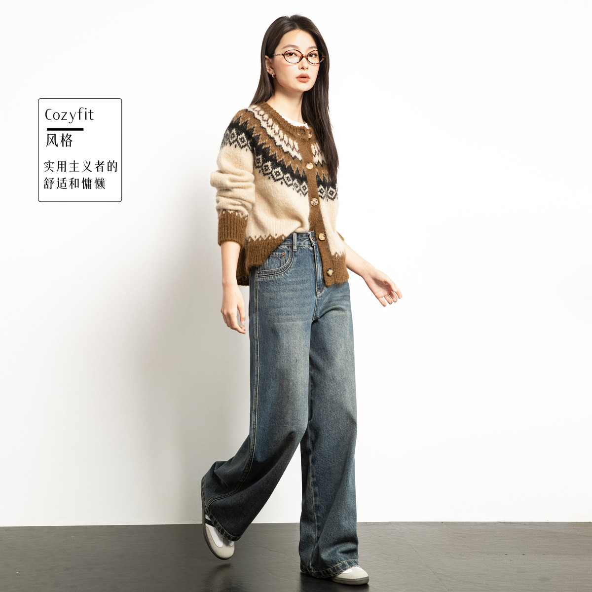 【雾岛牛仔】春秋季爆款复古水洗显高显瘦拼接直筒阔腿牛仔裤女 552769