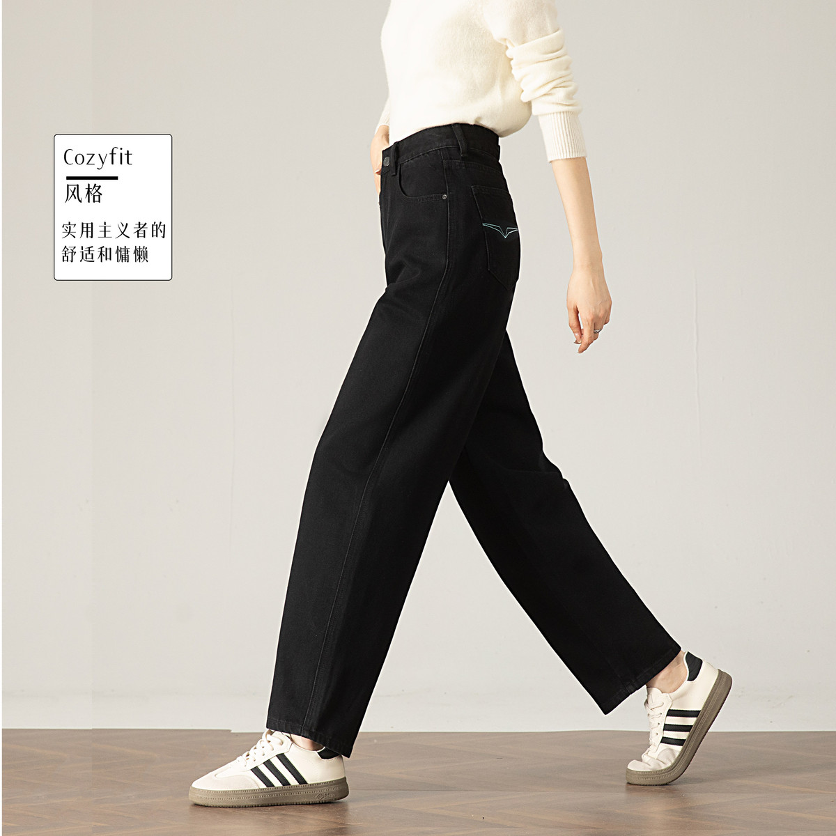 【时髦先锋】牛仔裤女休闲时尚窄版阔腿裤女显瘦直筒长裤子女 122456