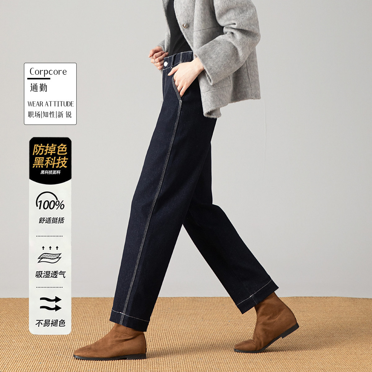 【通勤极简风】高腰显瘦春秋季畅销款后腰松紧锥形哈伦牛仔裤子女 919489
