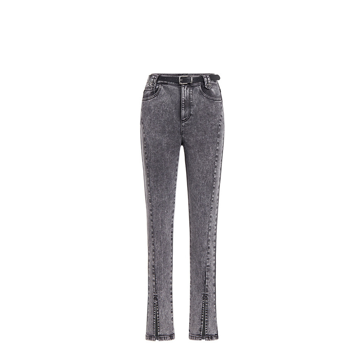 春装 高腰开衩修身显瘦高弹小脚牛仔长裤女 830351