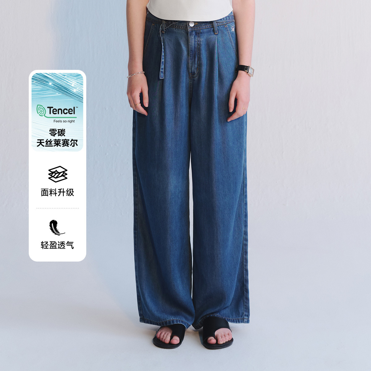 【莱赛尔垂顺阔腿裤】春季女式牛仔裤宽松显瘦直筒拖地长裤女 521281