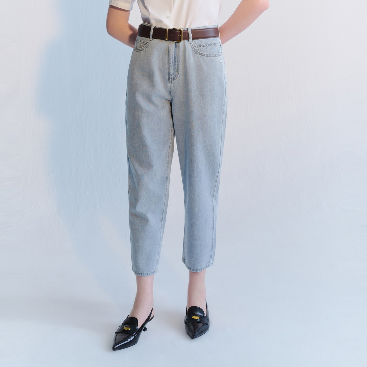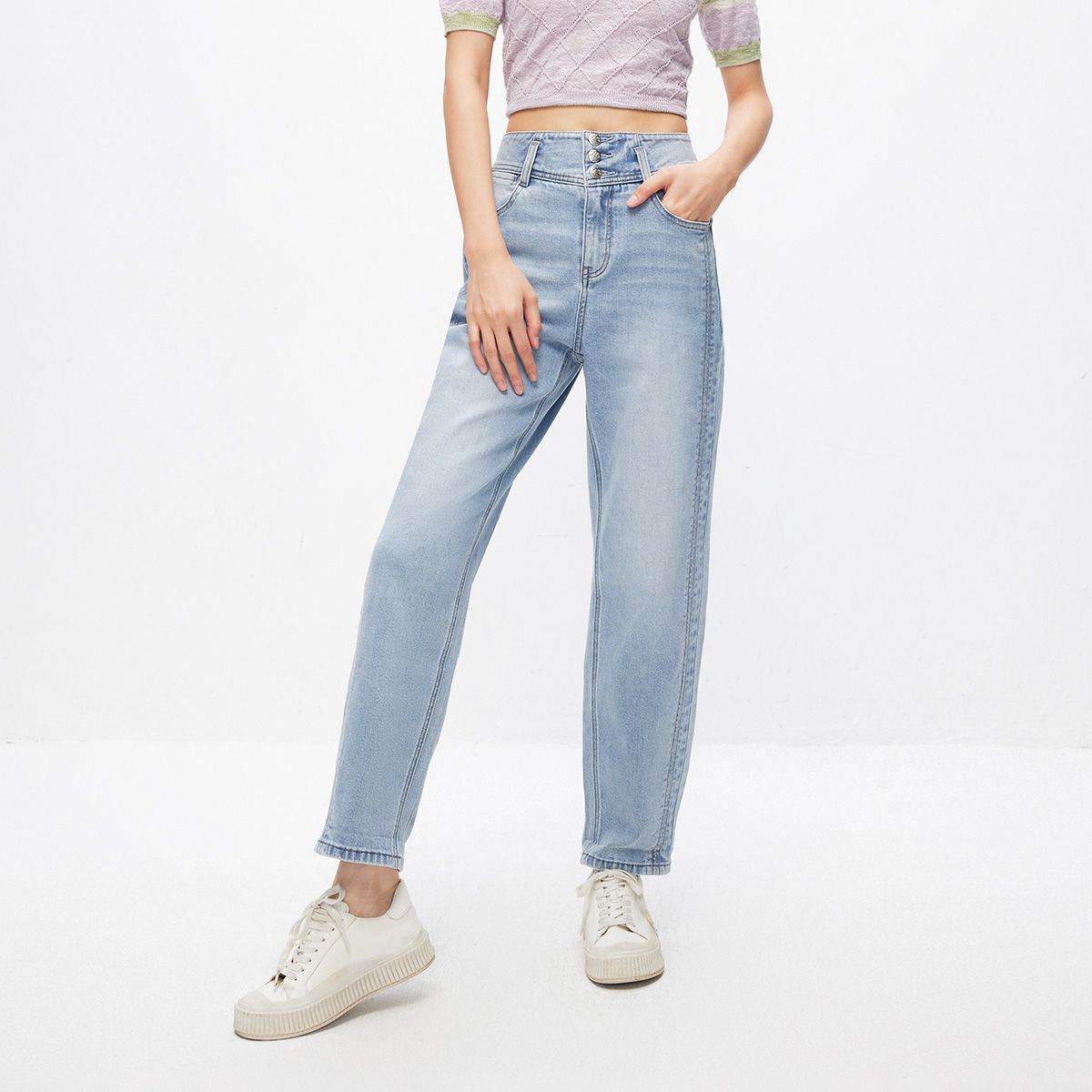 【零碳天丝】小熊春秋款高腰牛仔直筒裤长裤女士 046721