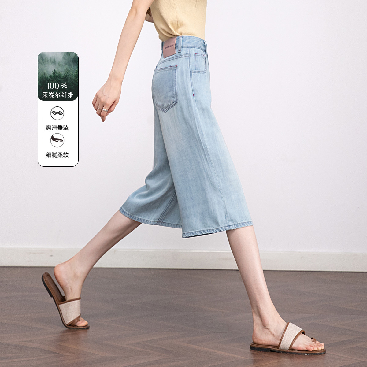 【薄荷曼波莱赛尔】春夏款牛仔裤女透气轻薄百搭八分阔腿裤女 039425
