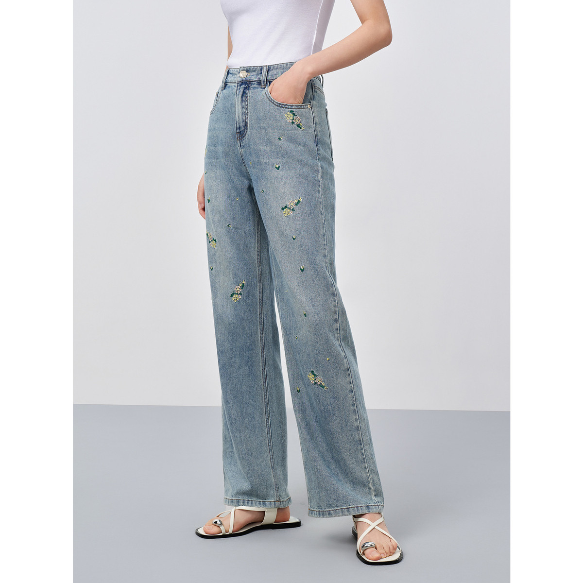 旗下安娜蔻系列时髦慵懒范绣花个性直筒裤子牛仔裤女装夏季 116108