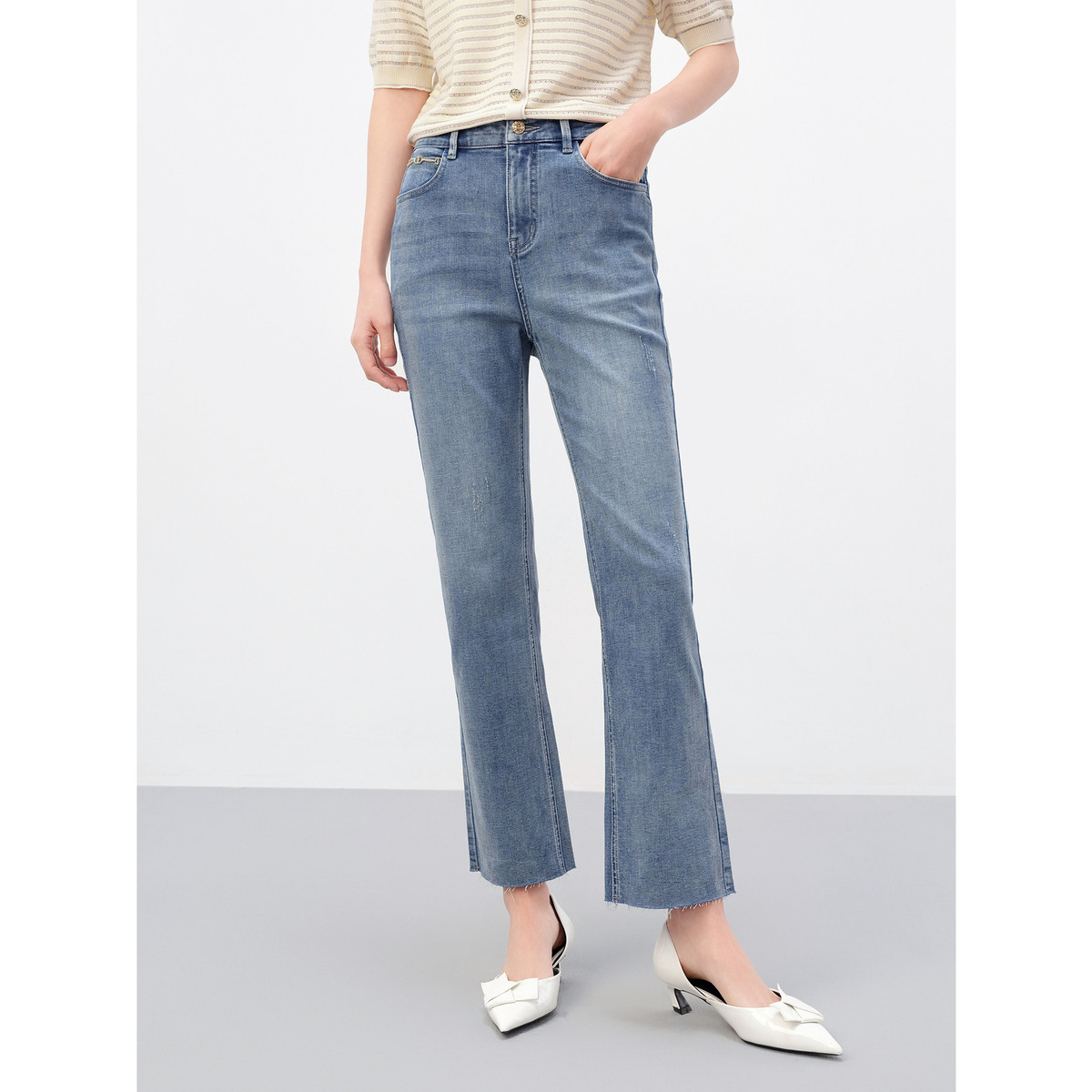 玖姿旗下安娜蔻系列通勤简约毛边微喇修身牛仔裤女夏季 904204