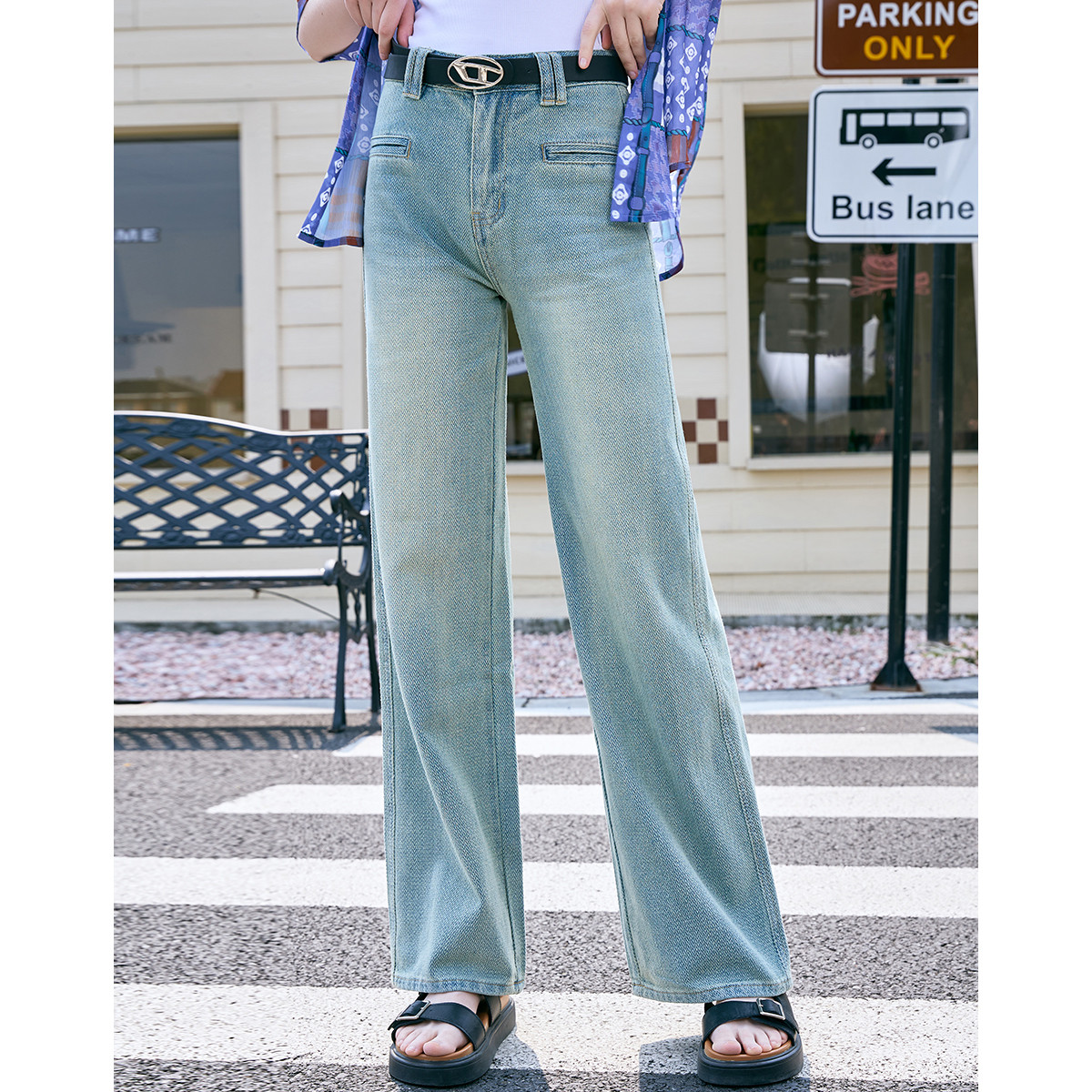 经典款水洗做旧高腰直筒裤夏季休闲街头风百搭女式牛仔裤 605405
