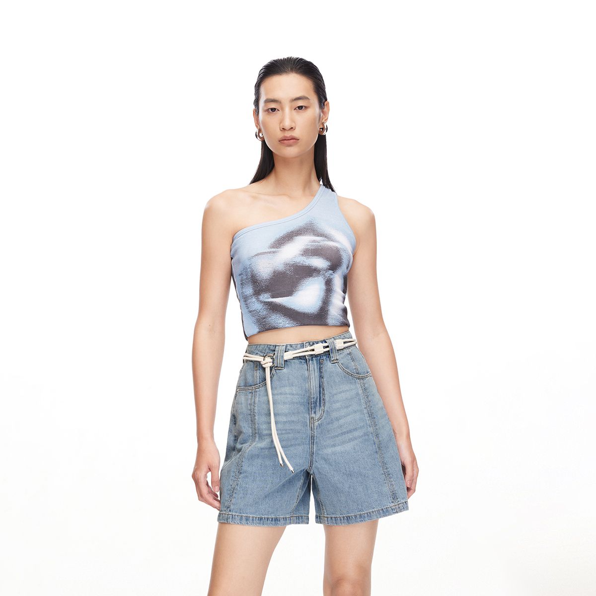 高腰磨破短款牛仔裤女2025夏不规则毛边破洞设计短裤 094995