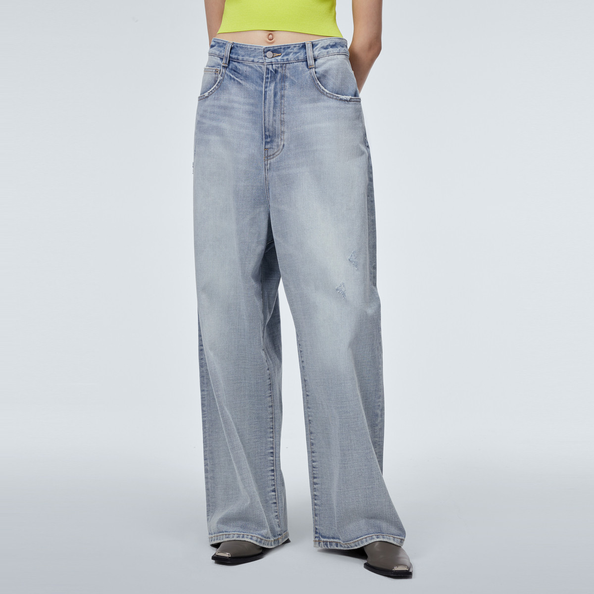 玖姿旗下安娜蔻系列松紧中腰宽松阔腿裤牛仔裤女 396044