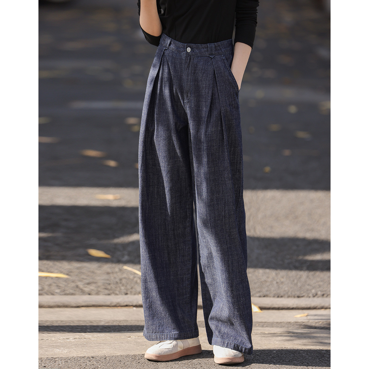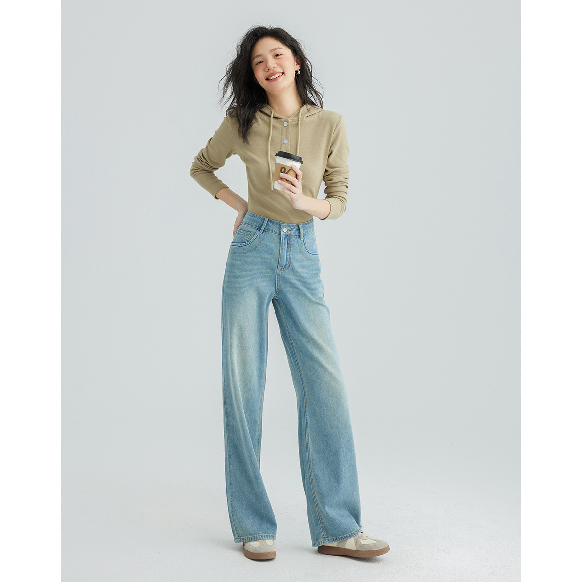 【莱赛尔垂顺阔腿裤】春季女式牛仔裤宽松显瘦直筒拖地长裤女 521281