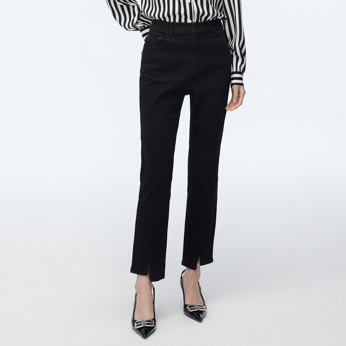 黑色开叉牛仔裤女夏季设计感修身百搭裤子小脚休闲裤子女 665411