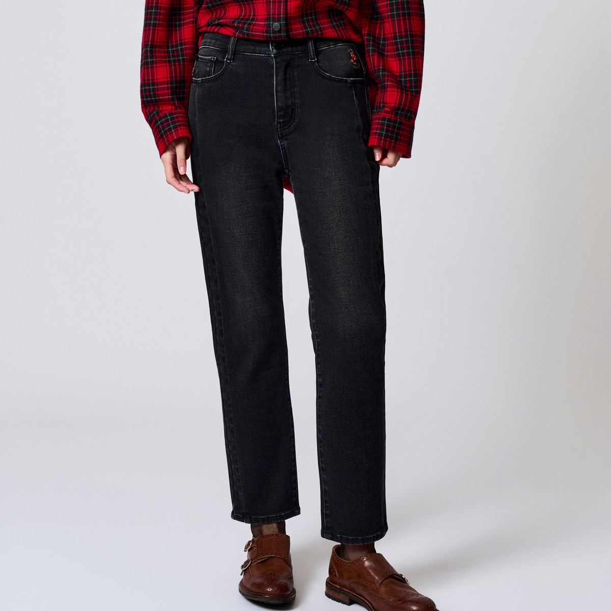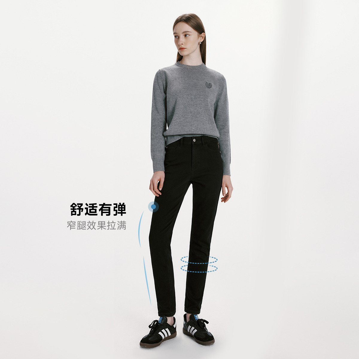 小熊女装牛仔裤黑色牛仔裤休闲时尚长裤复古美式 406529