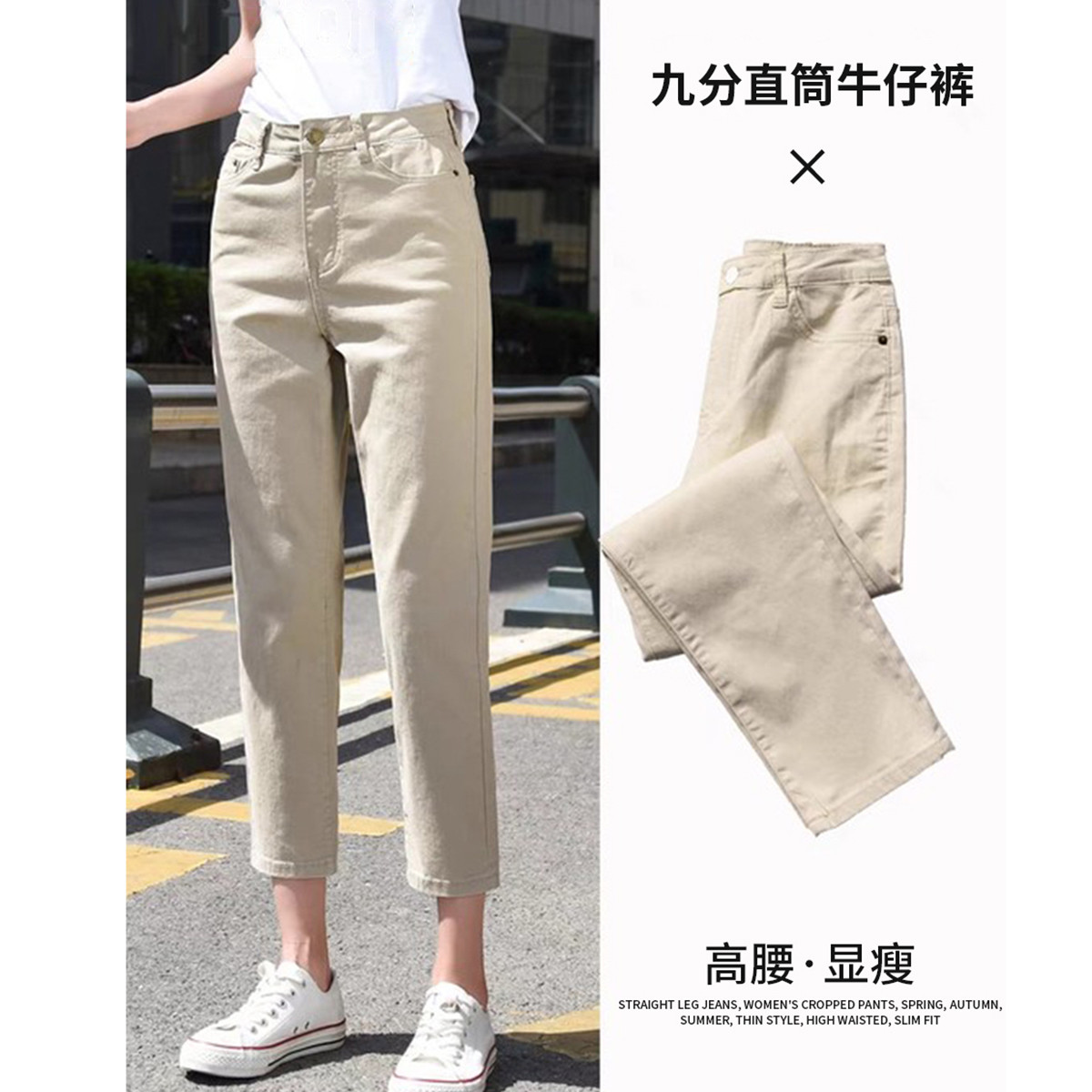 米子旗春秋款简约休闲女士牛仔裤直筒小脚裤九分裤 202138