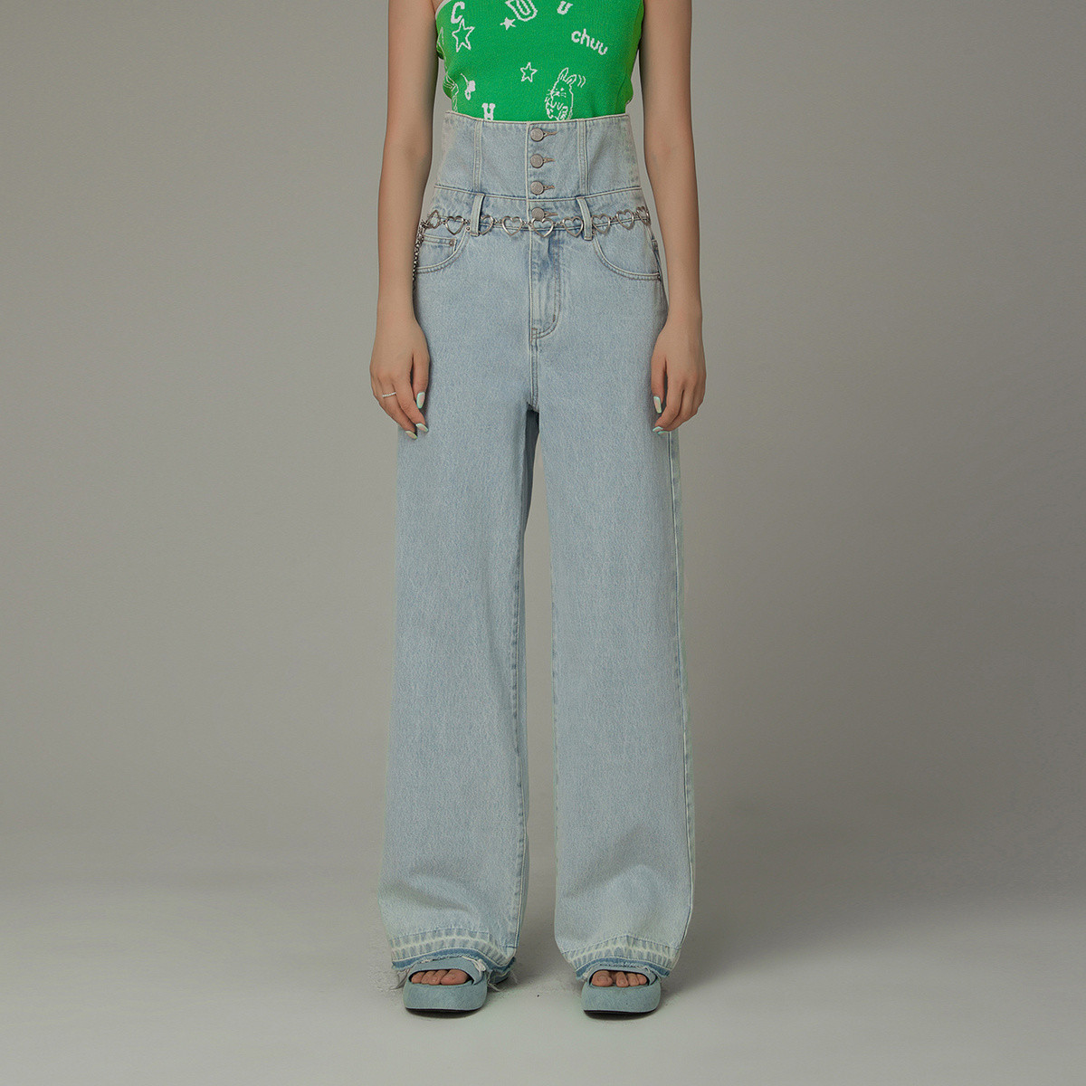 镂空爱心宽松牛仔裤女春秋季设计感小众拼色阔腿裤子 257747