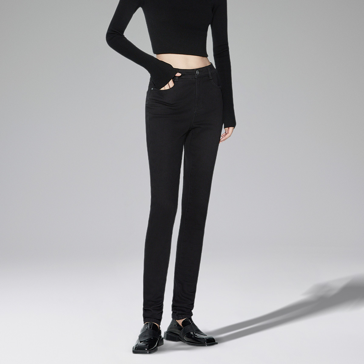 春装 修身设计感小众弹力高腰小脚牛仔裤女 448911