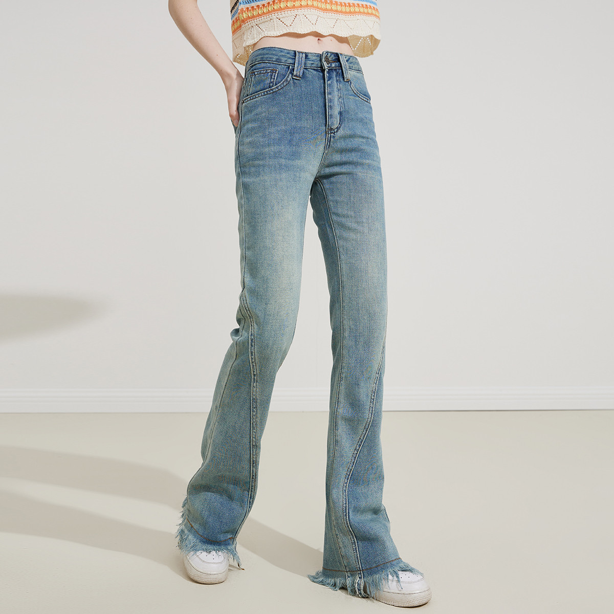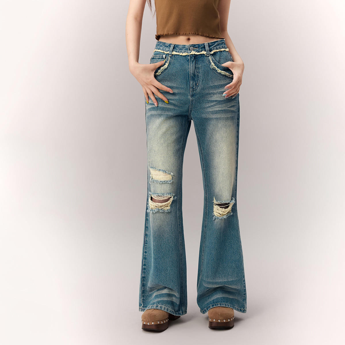 破洞微喇牛仔裤女2025夏高腰显瘦百搭设计感个性长裤 189779