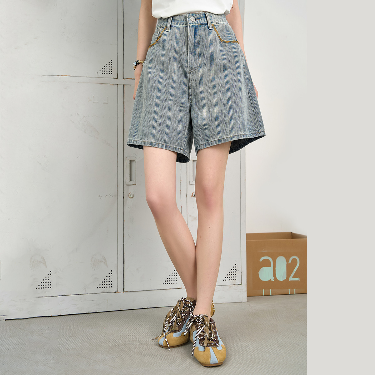 纹理感高腰显瘦宽松阔腿短裤2025夏季百搭休闲女式牛仔裤 279325