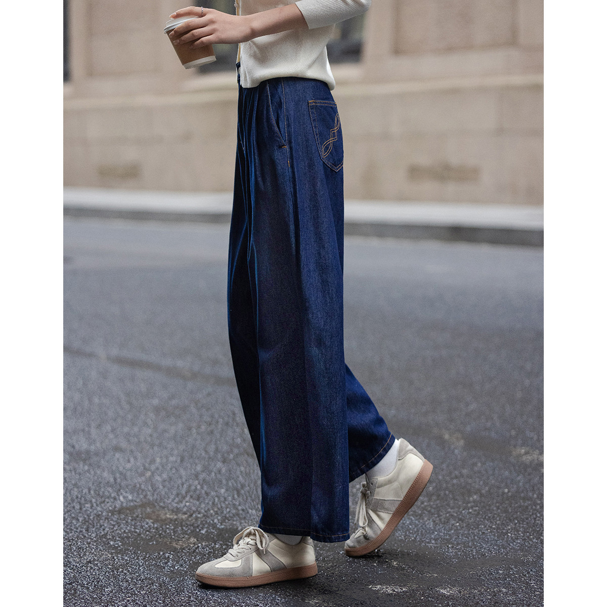 【莱赛尔垂顺阔腿裤】春季女式牛仔裤宽松显瘦直筒拖地长裤女 521281