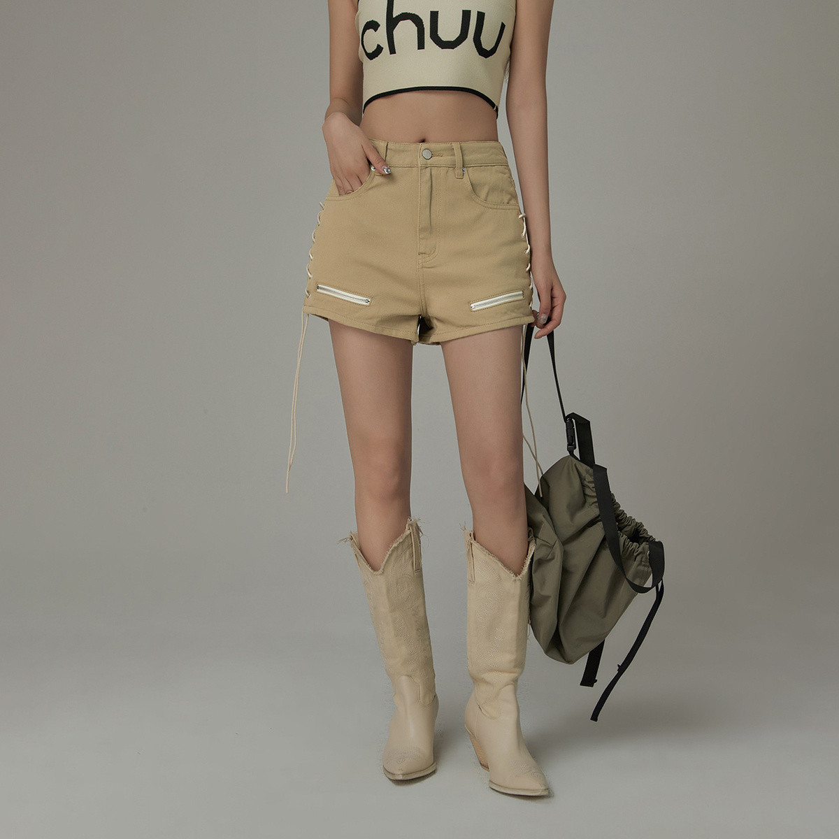 CHUU高腰绑带牛仔裤女夏设计感减龄洋气百搭短裤 300179