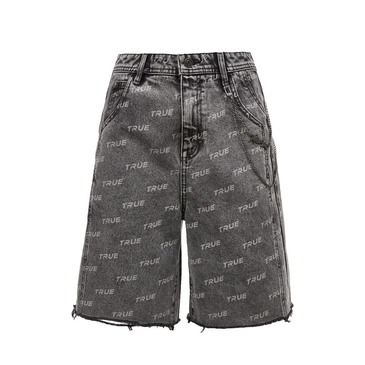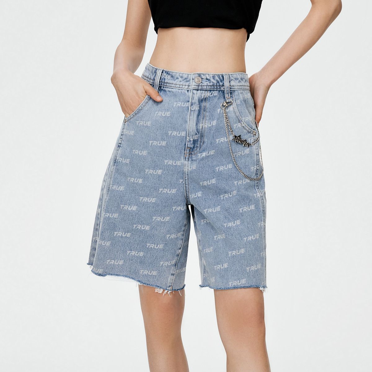 【时尚高腰】夏季满印毛边直筒短裤薄款牛仔裤女 463514