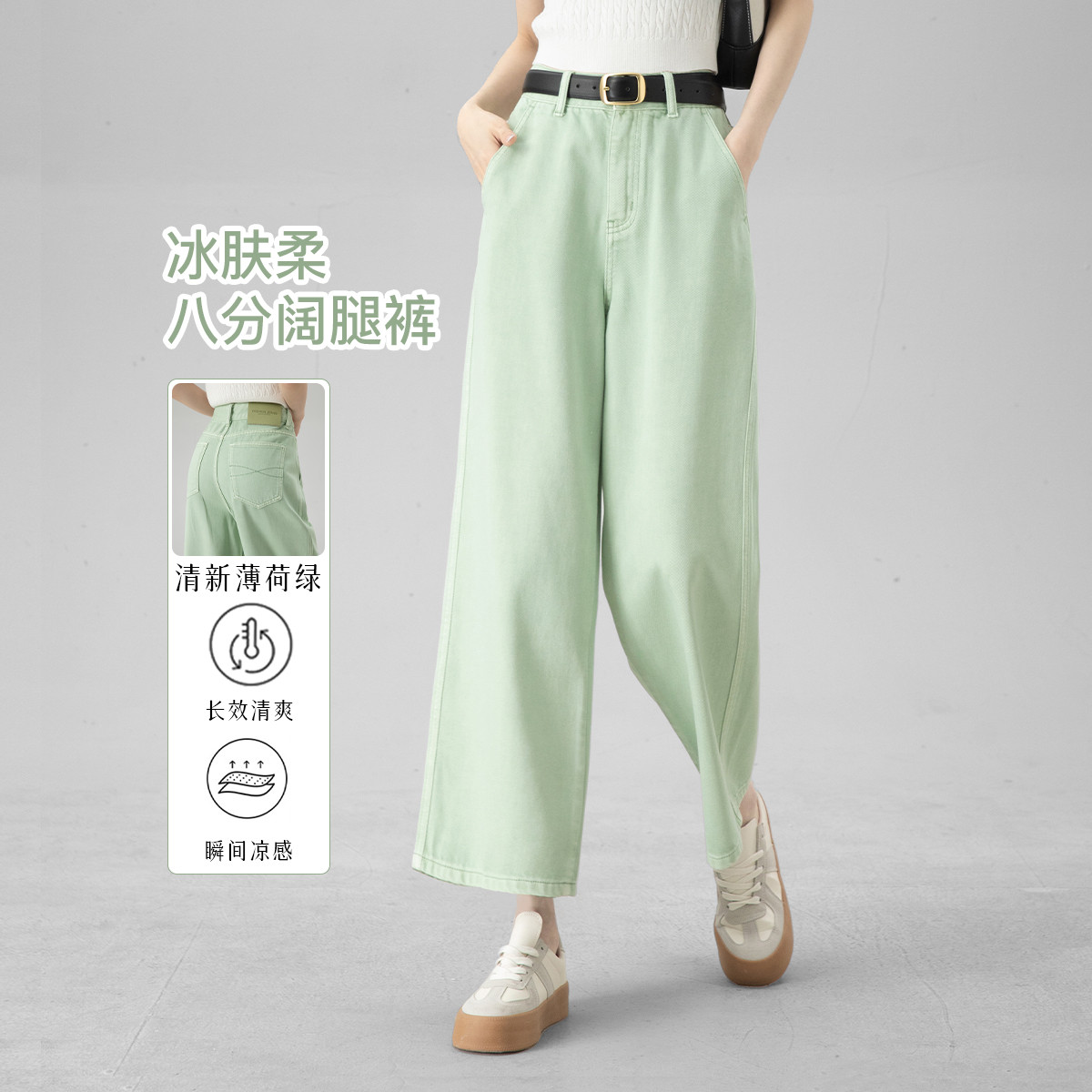 【薄荷曼波莱赛尔】春夏款牛仔裤女透气轻薄百搭八分阔腿裤女 039425