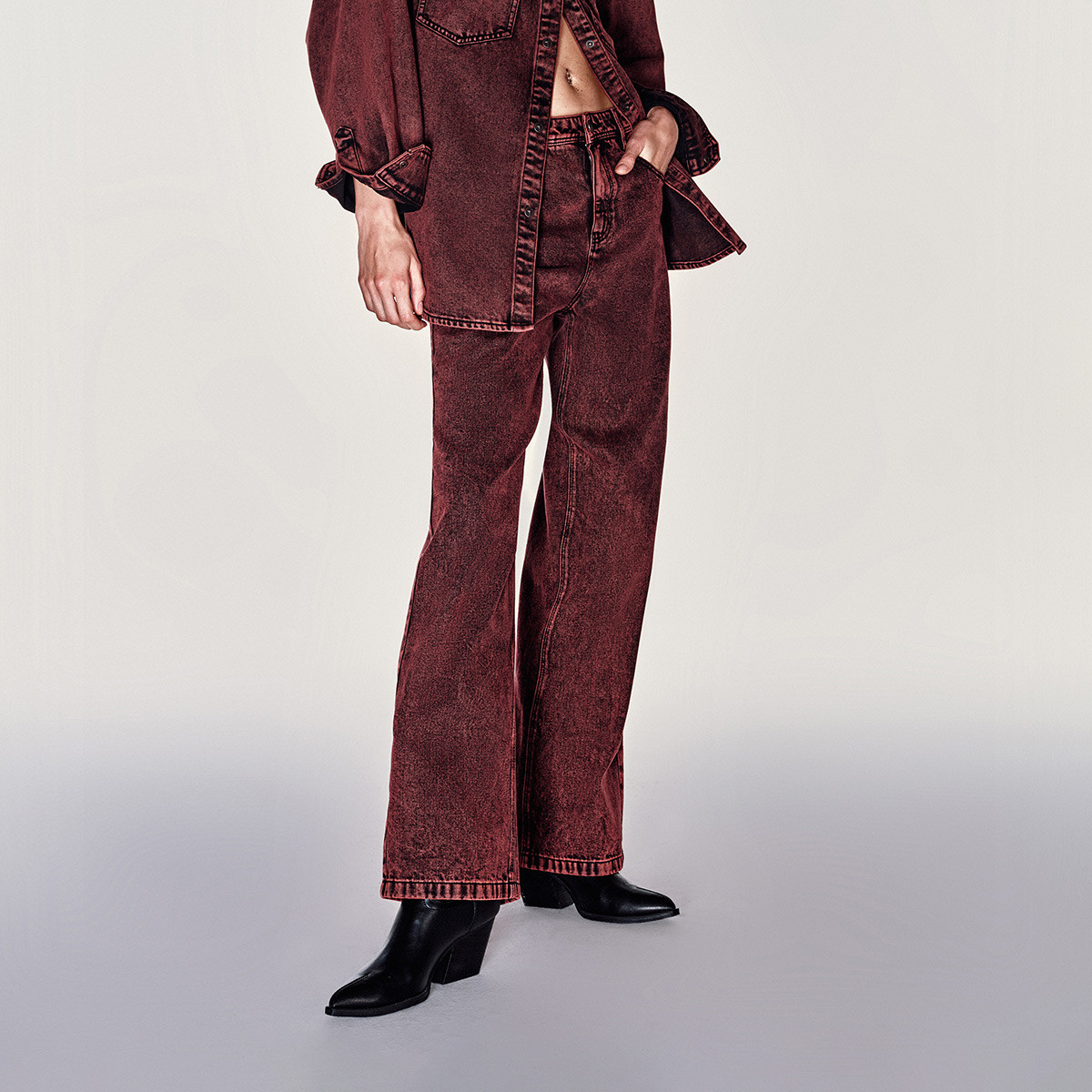 宽松阔腿牛仔裤女2025春印花长裤微喇裤子 809171