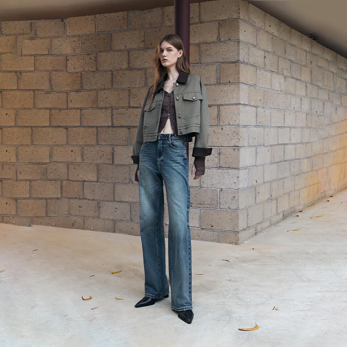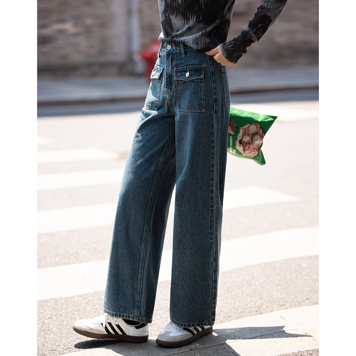 【商场同款】春装 Blythe小布系列棉醋酸阔腿牛仔裤女直筒裤 112271