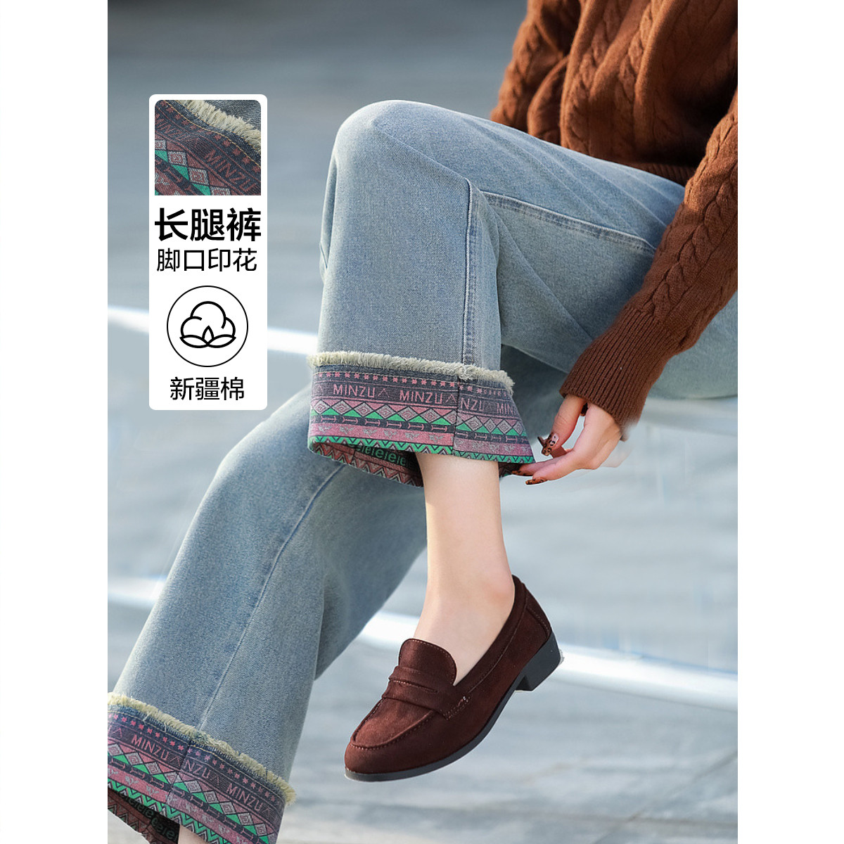 【大女主气场】春秋季热销款女式牛仔裤女高腰显瘦宽松阔喇裤子女 573441